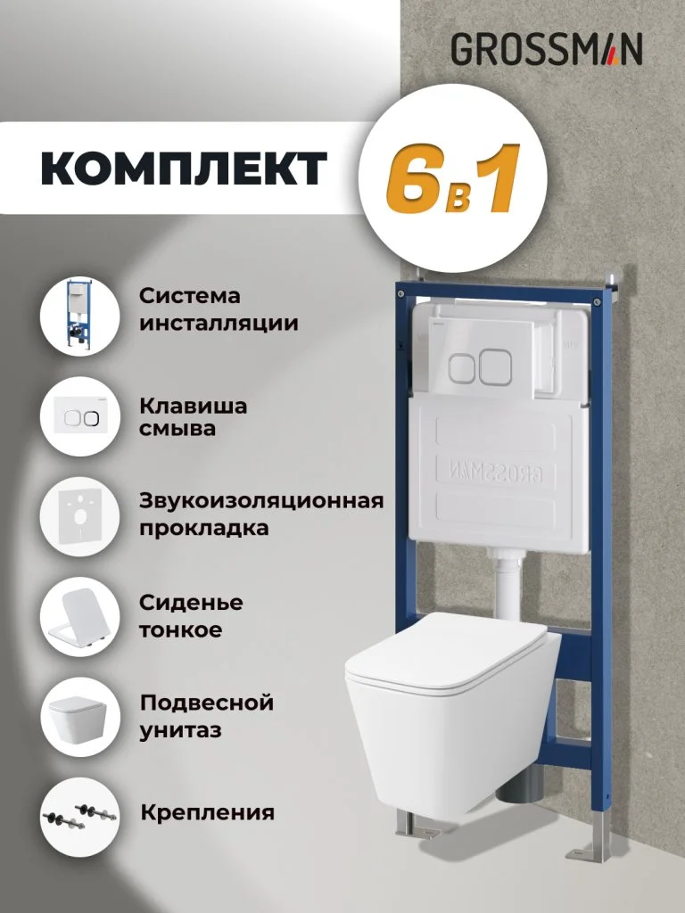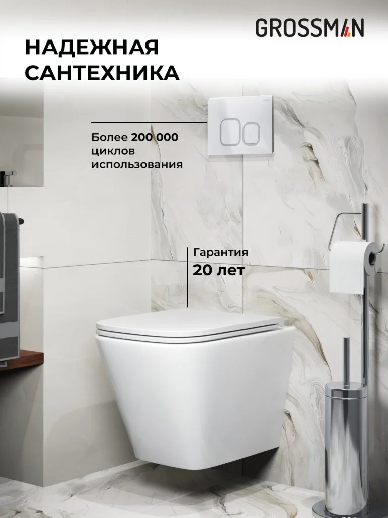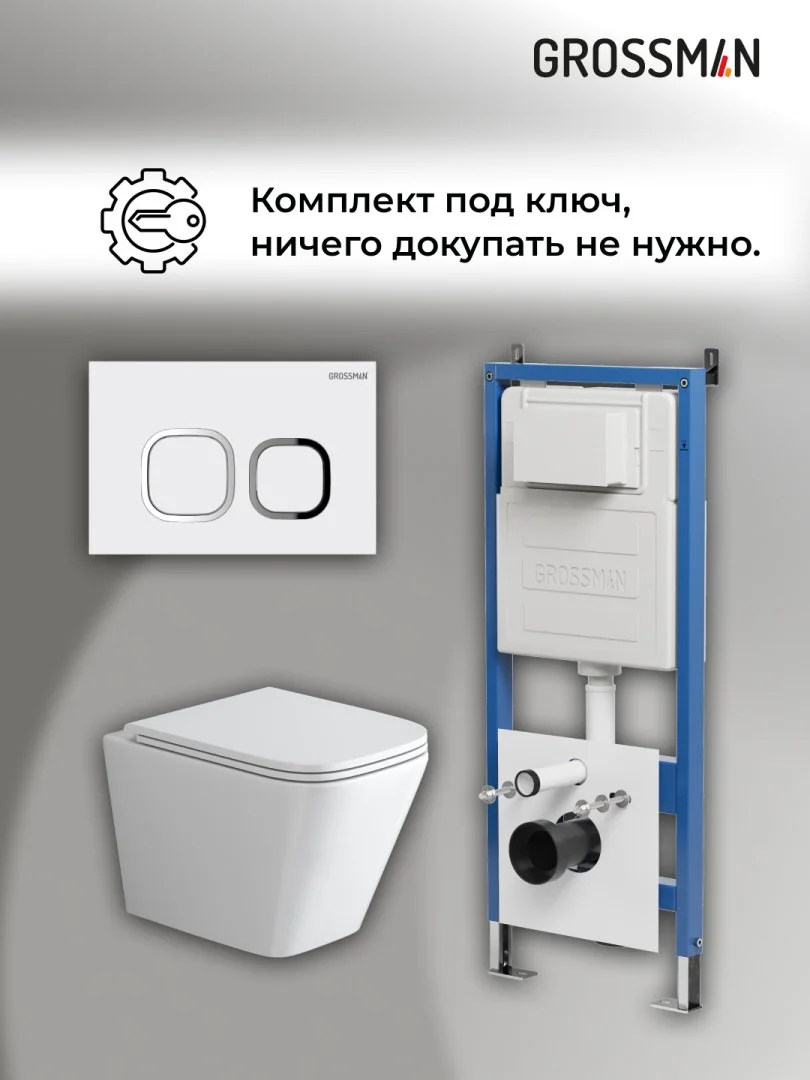 Комплект инсталляции GROSSMAN 900.K31.01.000 с клавишей смыва 700.K31.02.000.000 белый и унитазом GROSSMAN GR-4479SQ арт.97.4479SQ.02.000