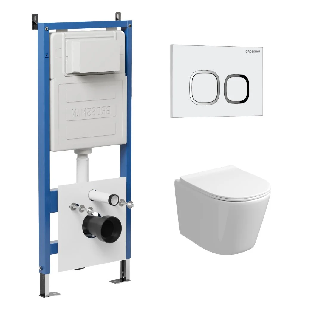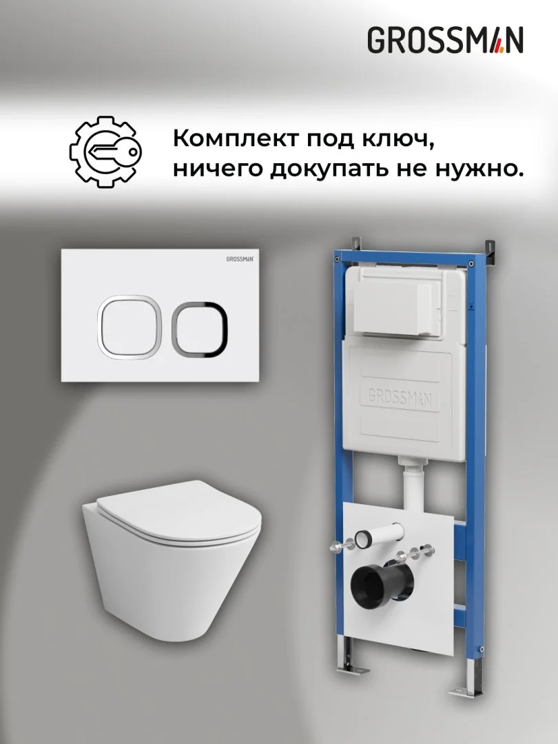 Комплект инсталляции GROSSMAN 900.K31.01.000 с клавишей смыва 700.K31.02.000.000 белый и унитазом GROSSMAN GR-4477S арт.97.4477S.02.000