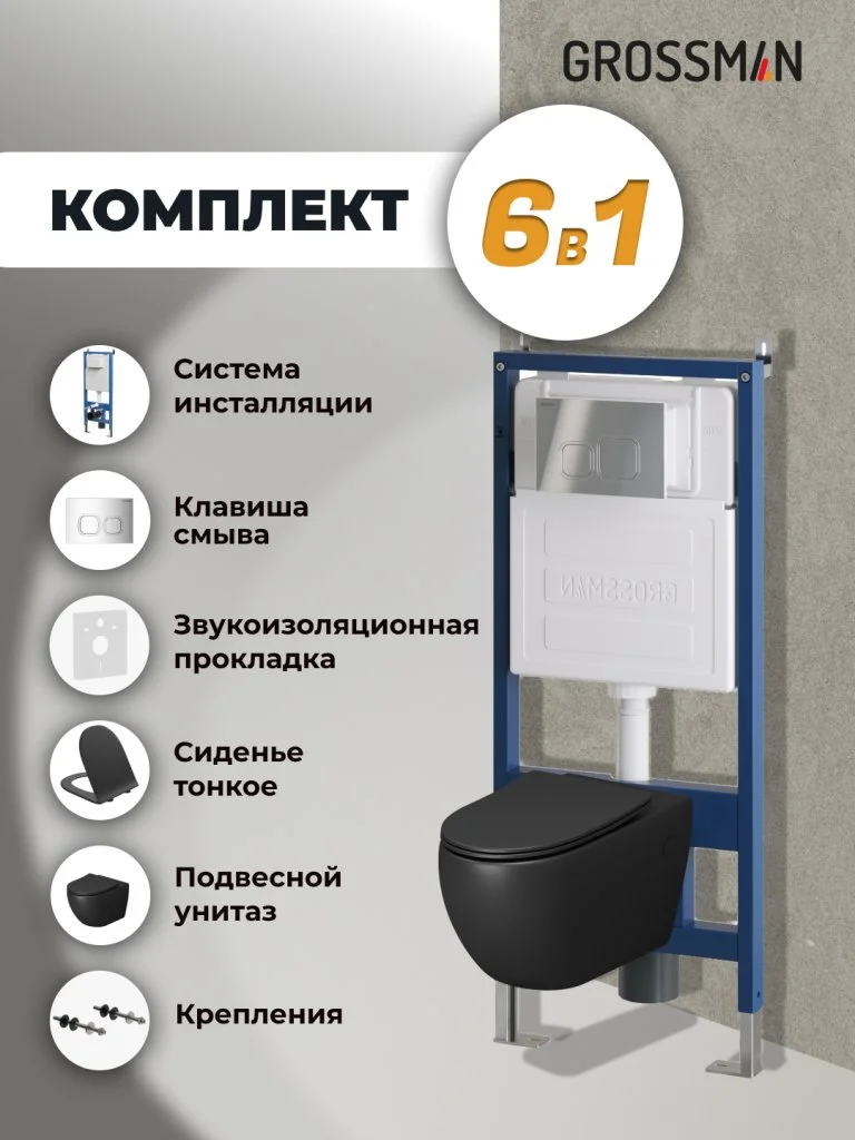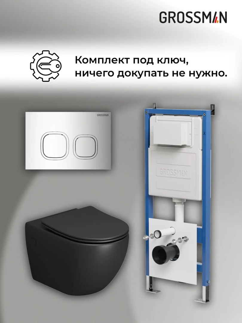 Комплект инсталляции GROSSMAN 900.K31.01.000 с клавишей смыва 700.K31.02.100.100 хром и унитазом GROSSMAN GR-4411BMS арт.97.4411BMS.02.100
