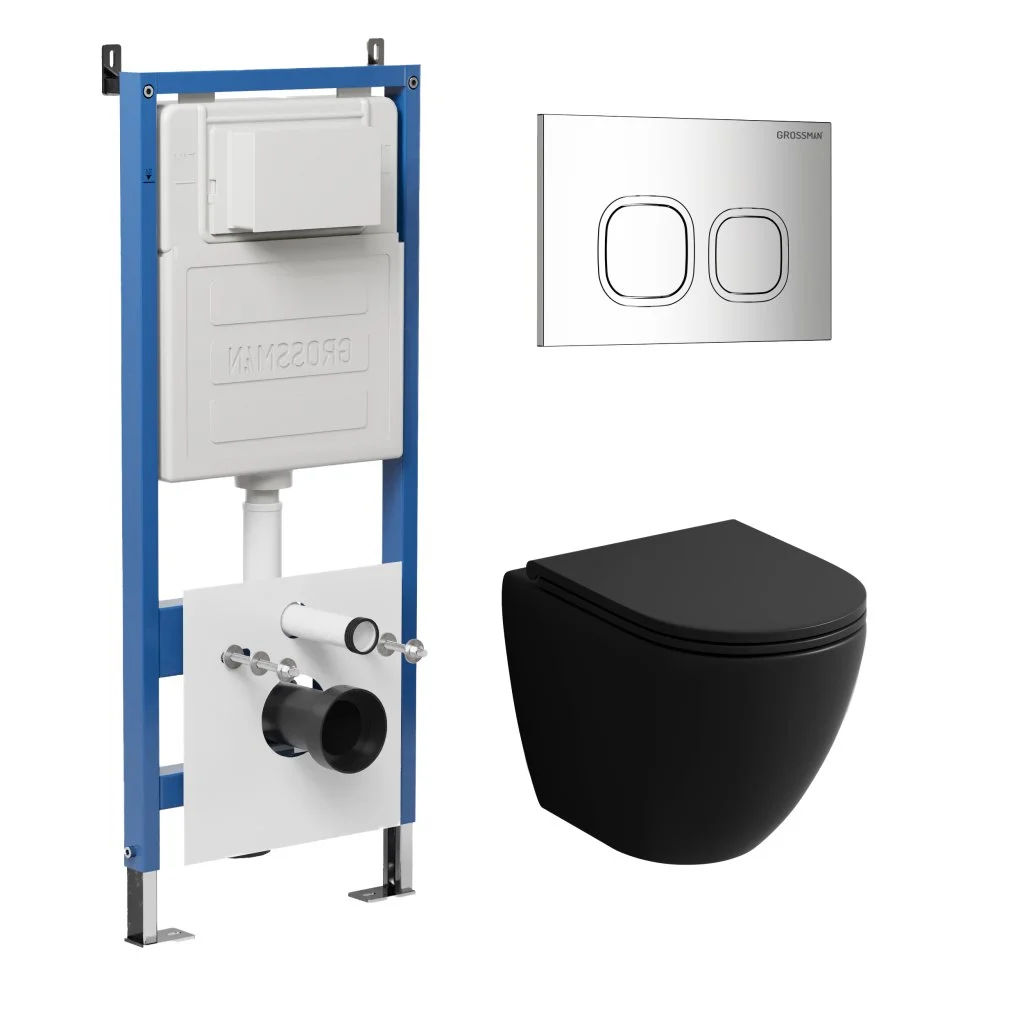 Комплект инсталляции GROSSMAN 900.K31.01.000 с клавишей смыва 700.K31.02.100.100 хром и унитазом GROSSMAN GR-4455BMSQ арт.97.4455BMSQ.02.100