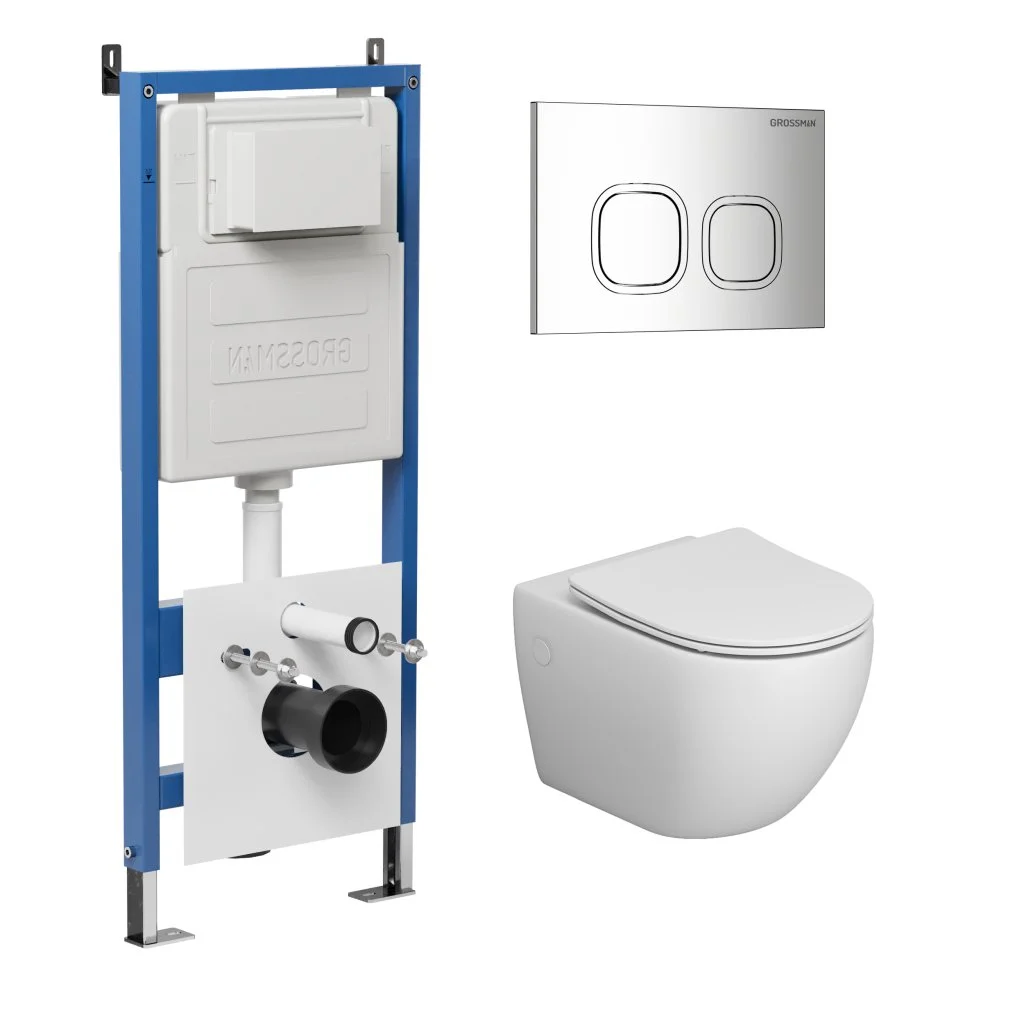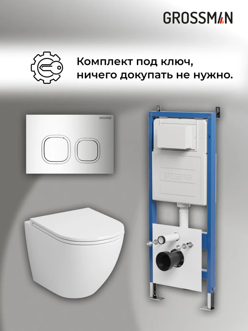 Комплект инсталляции GROSSMAN 900.K31.01.000 с клавишей смыва 700.K31.02.100.100 хром и унитазом GROSSMAN GR-4411SQ арт.97.4411SQ.02.100
