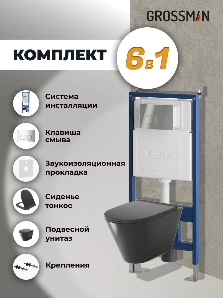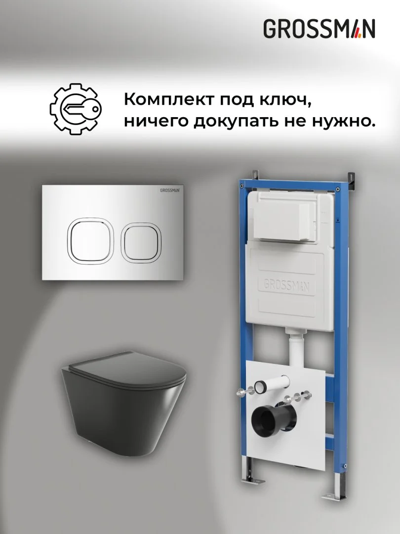 Комплект инсталляции GROSSMAN 900.K31.01.000 с клавишей смыва 700.K31.02.100.100 хром и унитазом GROSSMAN GR-4477BMS арт.97.4477BMS.02.100