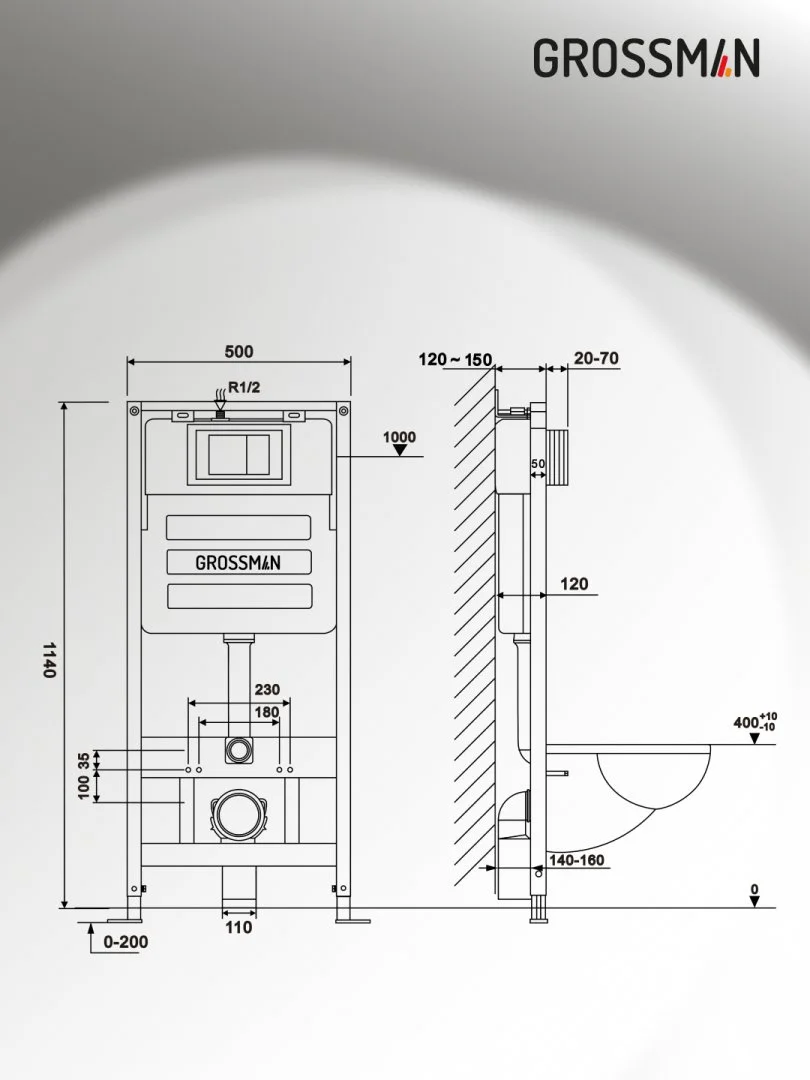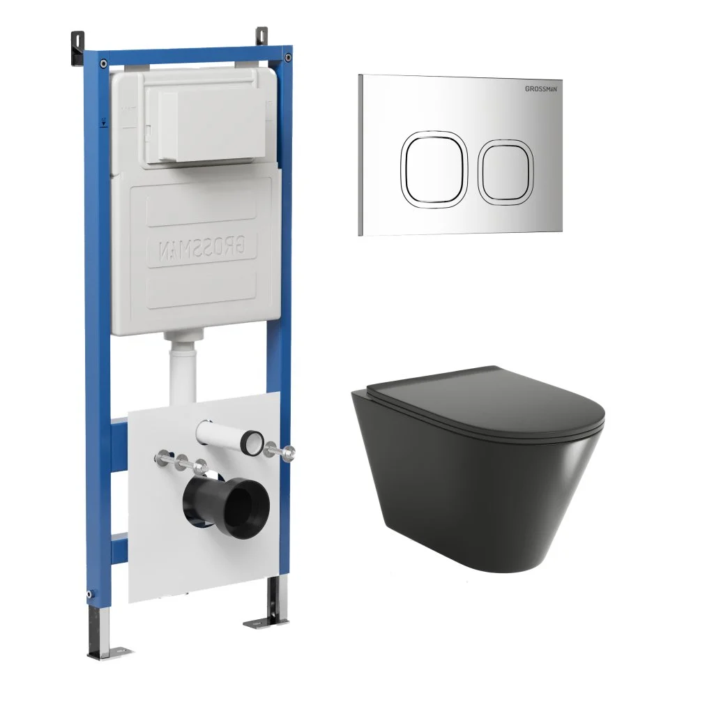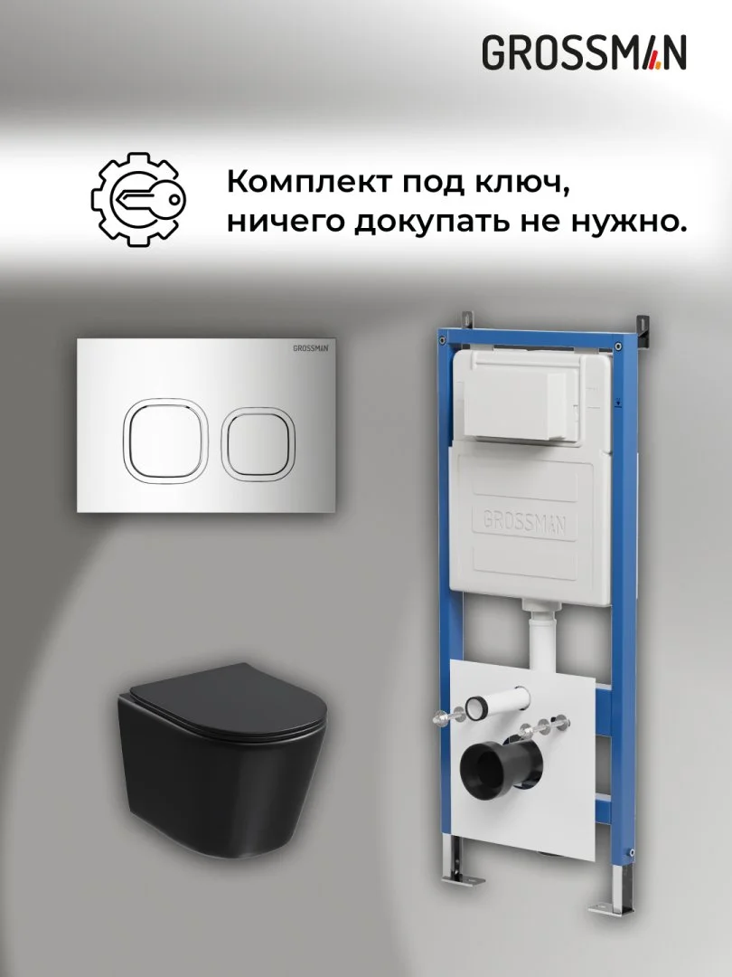 Комплект инсталляции GROSSMAN 900.K31.01.000 с клавишей смыва 700.K31.02.100.100 хром и унитазом GROSSMAN GR-4477BMSQ арт.97.4477BMSQ.02.100