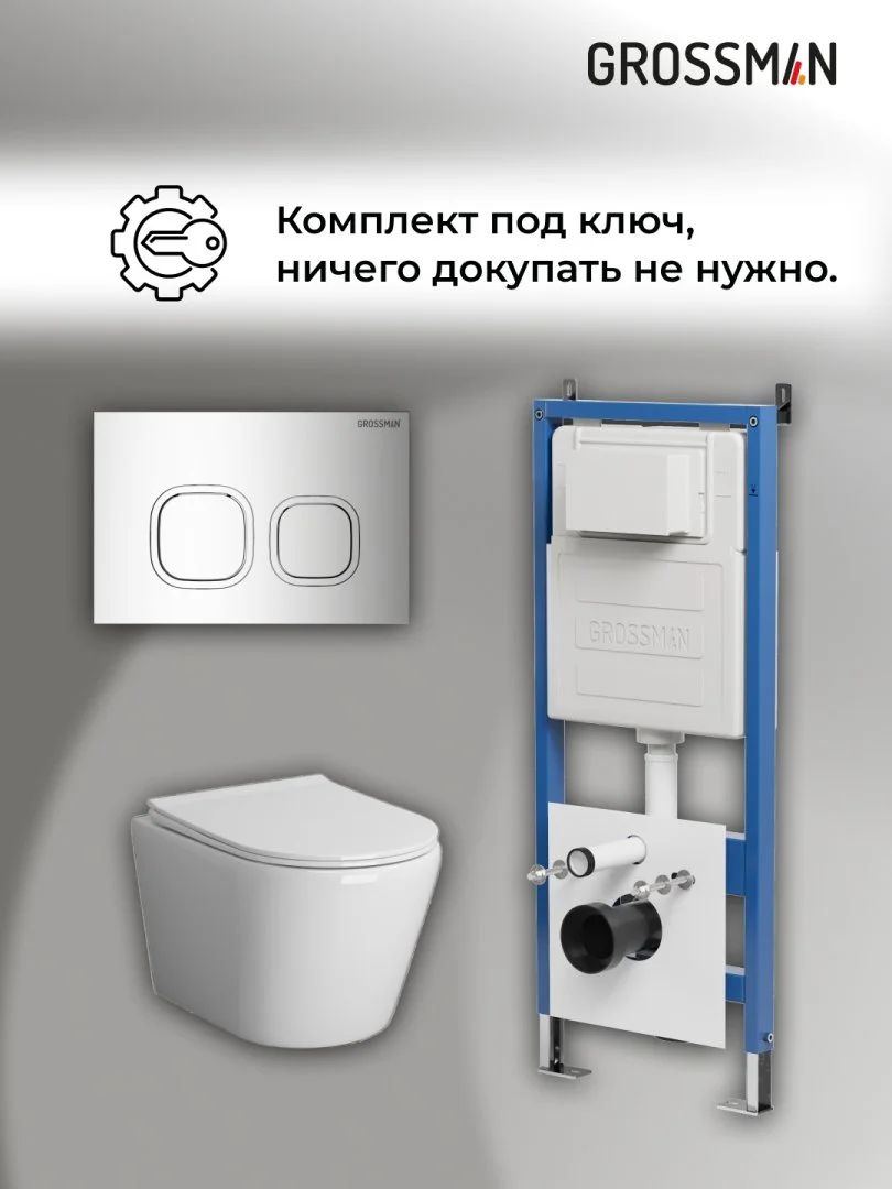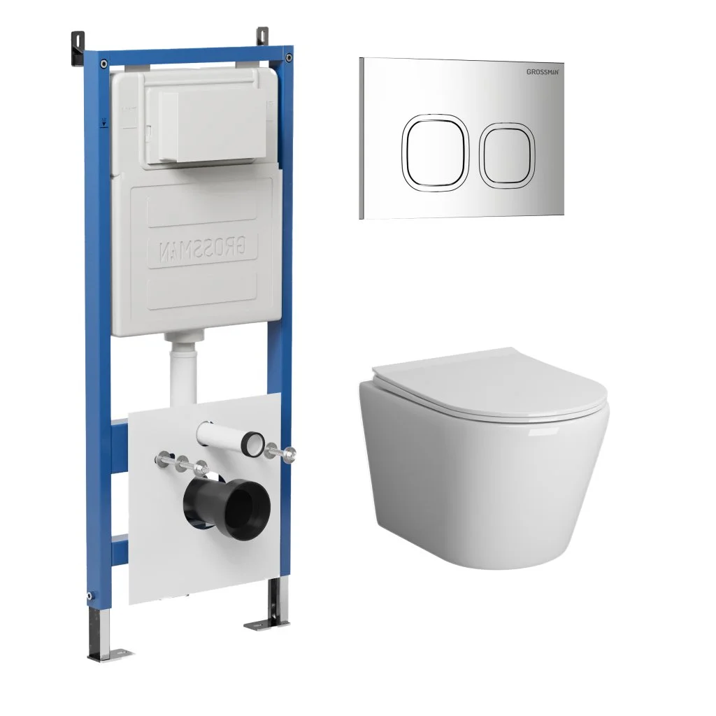 Комплект инсталляции GROSSMAN 900.K31.01.000 с клавишей смыва 700.K31.02.100.100 хром и унитазом GROSSMAN GR-4478SQ арт.97.4478SQ.02.100
