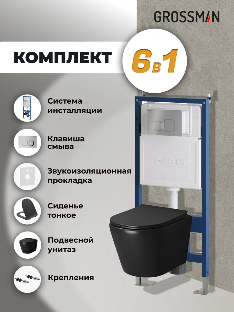 Комплект инсталляции GROSSMAN 900.K31.01.000 с клавишей смыва 700.K31.02.110.110 хром матовый и унитазом GROSSMAN GR-4478BMS арт.97.4478BMS.02.110