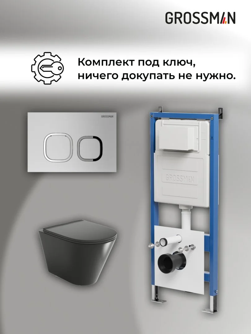 Комплект инсталляции GROSSMAN 900.K31.01.000 с клавишей смыва 700.K31.02.110.110 хром матовый и унитазом GROSSMAN GR-4477BMS арт.97.4477BMS.02.110