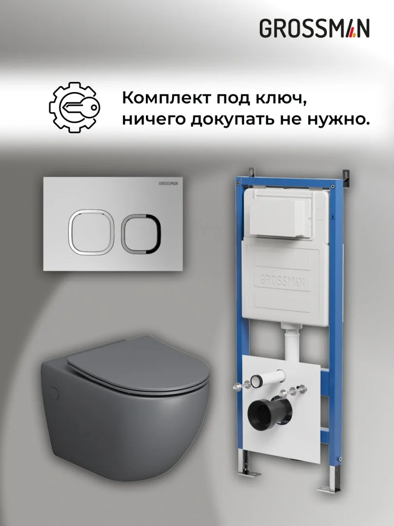 Комплект инсталляции GROSSMAN 900.K31.01.000 с клавишей смыва 700.K31.02.110.110 хром матовый и унитазом GROSSMAN GR-4411GMS арт.97.4411GMS.02.110