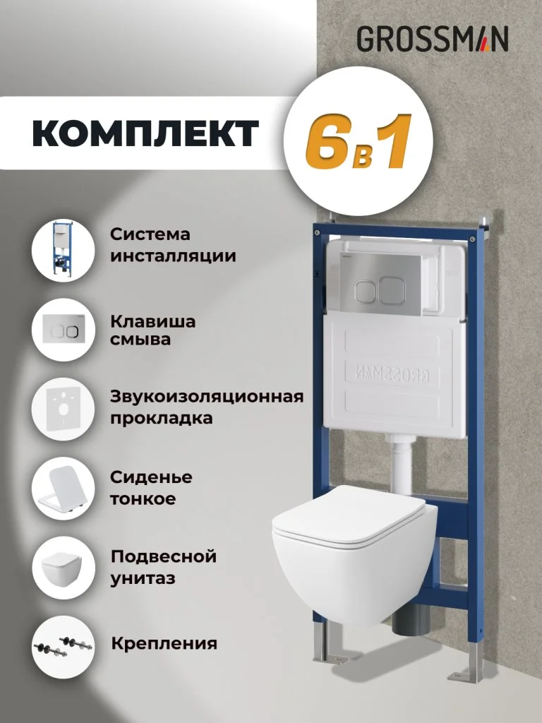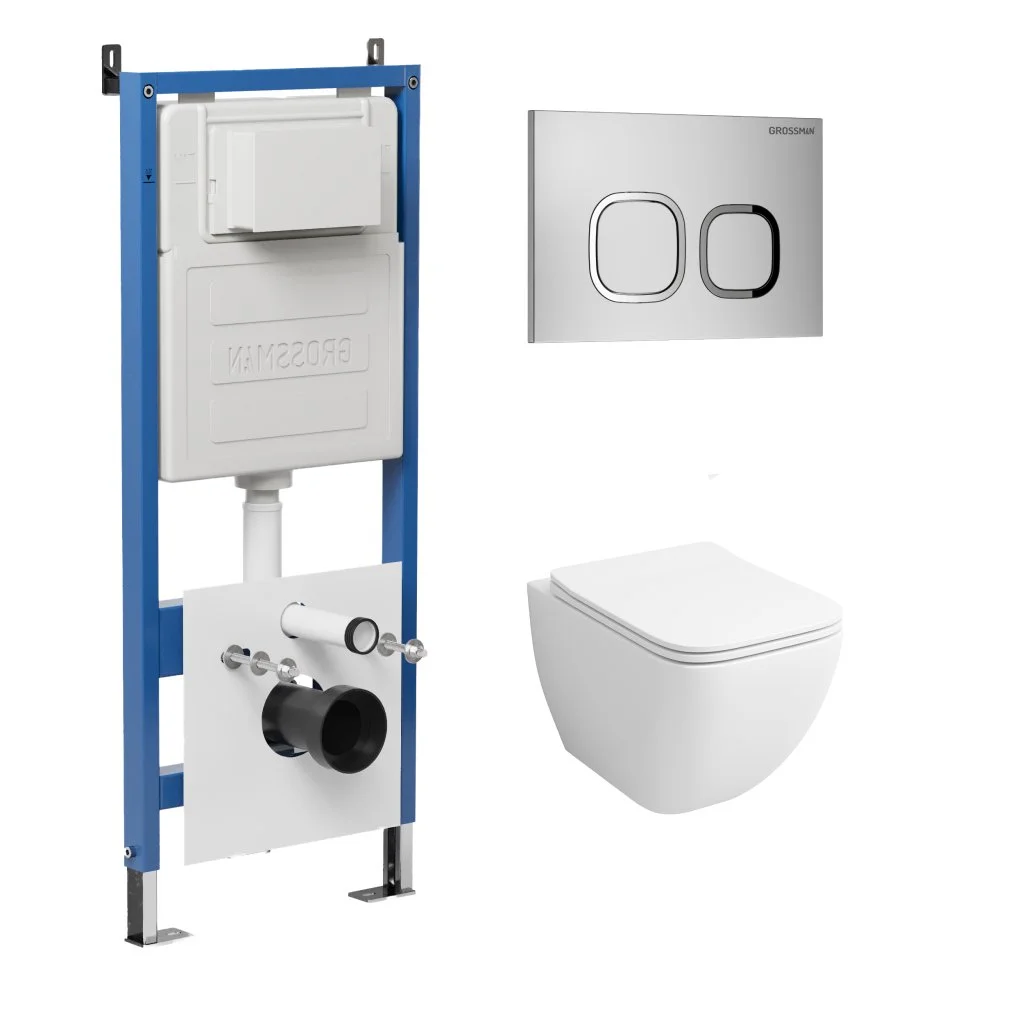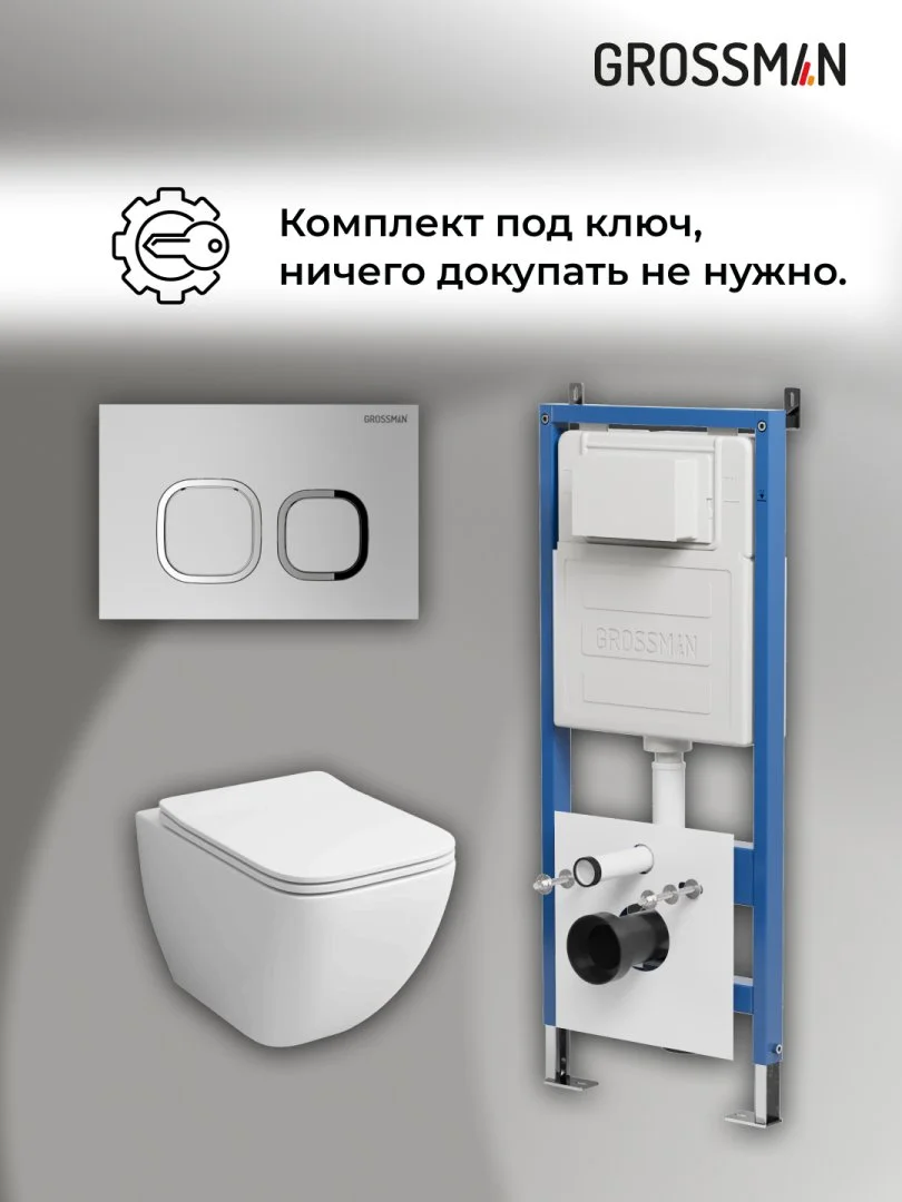 Комплект инсталляции GROSSMAN 900.K31.01.000 с клавишей смыва 700.K31.02.110.110 хром матовый и унитазом GROSSMAN GR-4447S арт.97.4447S.02.110