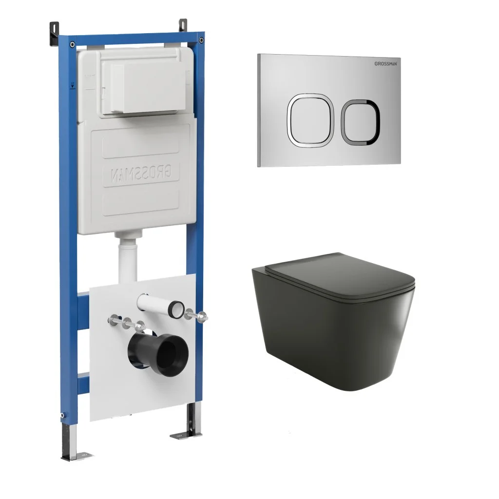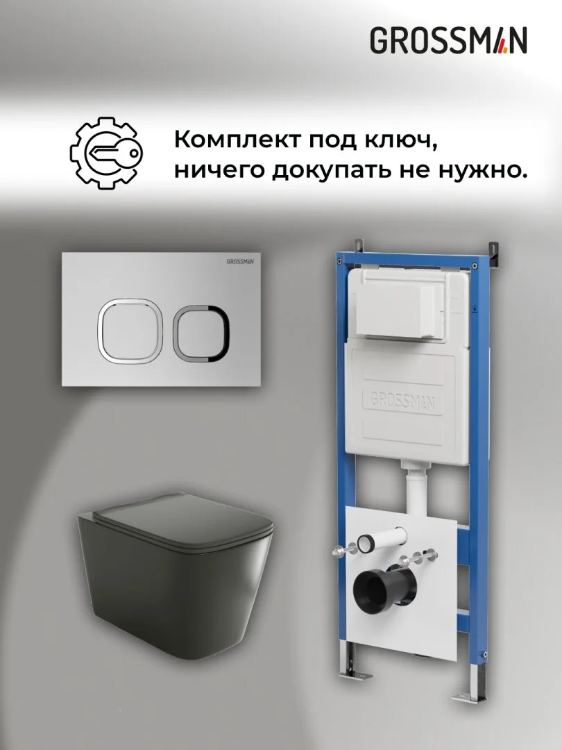 Комплект инсталляции GROSSMAN 900.K31.01.000 с клавишей смыва 700.K31.02.110.110 хром матовый и унитазом GROSSMAN GR-4441BMS арт.97.4441BMS.02.110