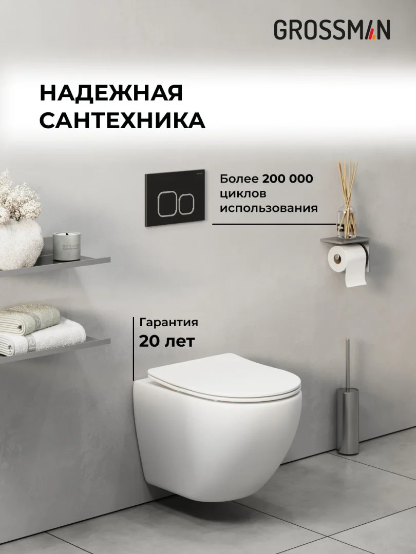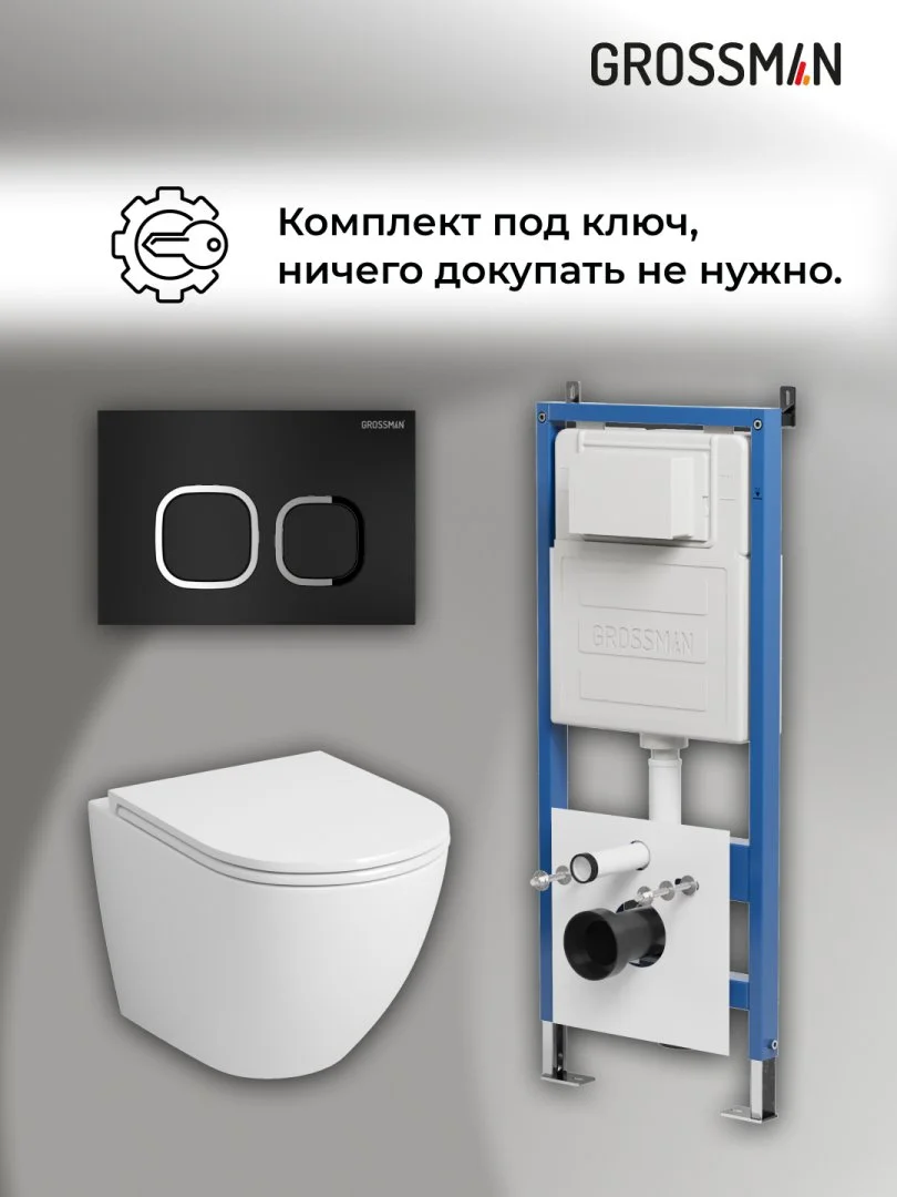 Комплект инсталляции GROSSMAN 900.K31.01.000 с клавишей смыва 700.K31.02.210.210 черный матовый и унитазом GROSSMAN GR-4455SQ арт.97.4455SQ.02.210