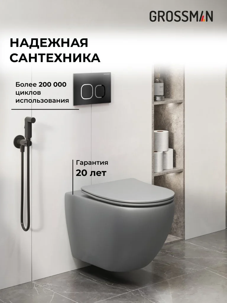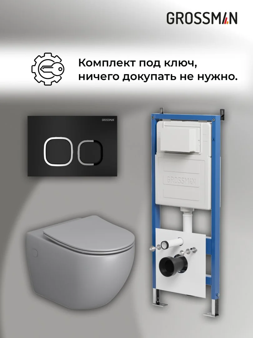 Комплект инсталляции GROSSMAN 900.K31.01.000 с клавишей смыва 700.K31.02.210.210 черный матовый и унитазом GROSSMAN GR-4411GLMS арт.97.4411GLMS.02.210