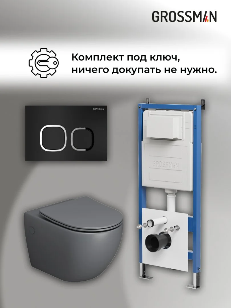 Комплект инсталляции GROSSMAN 900.K31.01.000 с клавишей смыва 700.K31.02.210.210 черный матовый и унитазом GROSSMAN GR-4411GMS арт.97.4411GMS.02.210