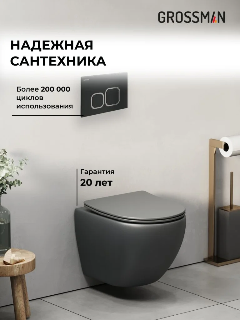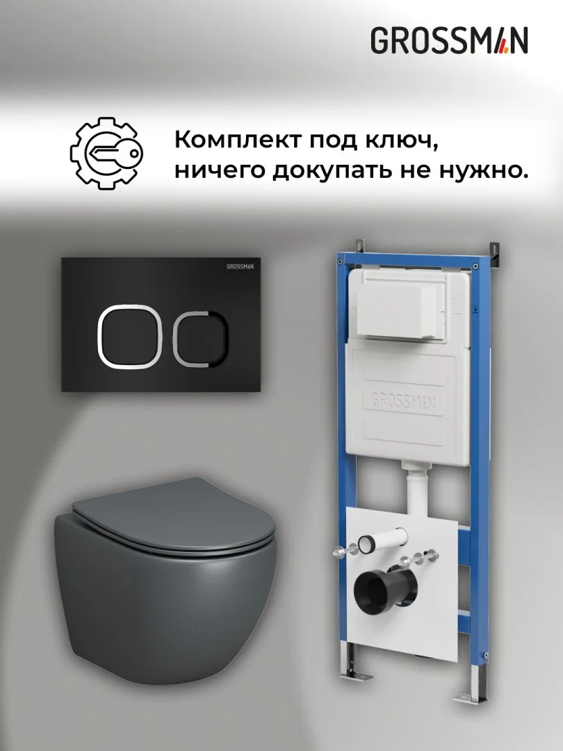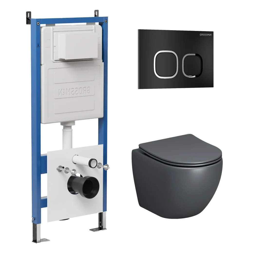Комплект инсталляции GROSSMAN 900.K31.01.000 с клавишей смыва 700.K31.02.210.210 черный матовый и унитазом GROSSMAN GR-4455GMS арт.97.4455GMS.02.210