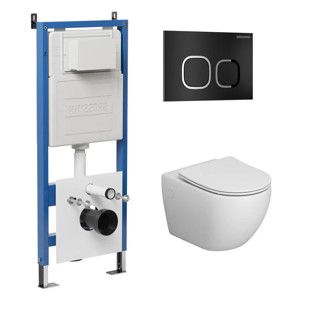 Комплект инсталляции GROSSMAN 900.K31.01.000 с клавишей смыва 700.K31.02.210.210 черный матовый и унитазом GROSSMAN GR-4411SQ арт.97.4411SQ.02.210