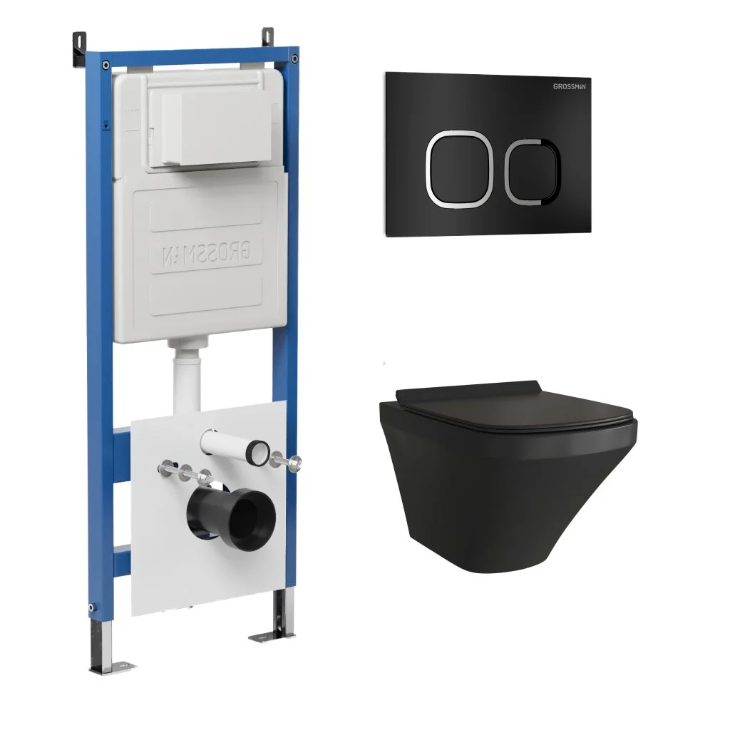 Комплект инсталляции GROSSMAN 900.K31.01.000 с клавишей смыва 700.K31.02.210.210 черный матовый и унитазом GROSSMAN GR-4440BMS арт.97.4440BMS.02.210
