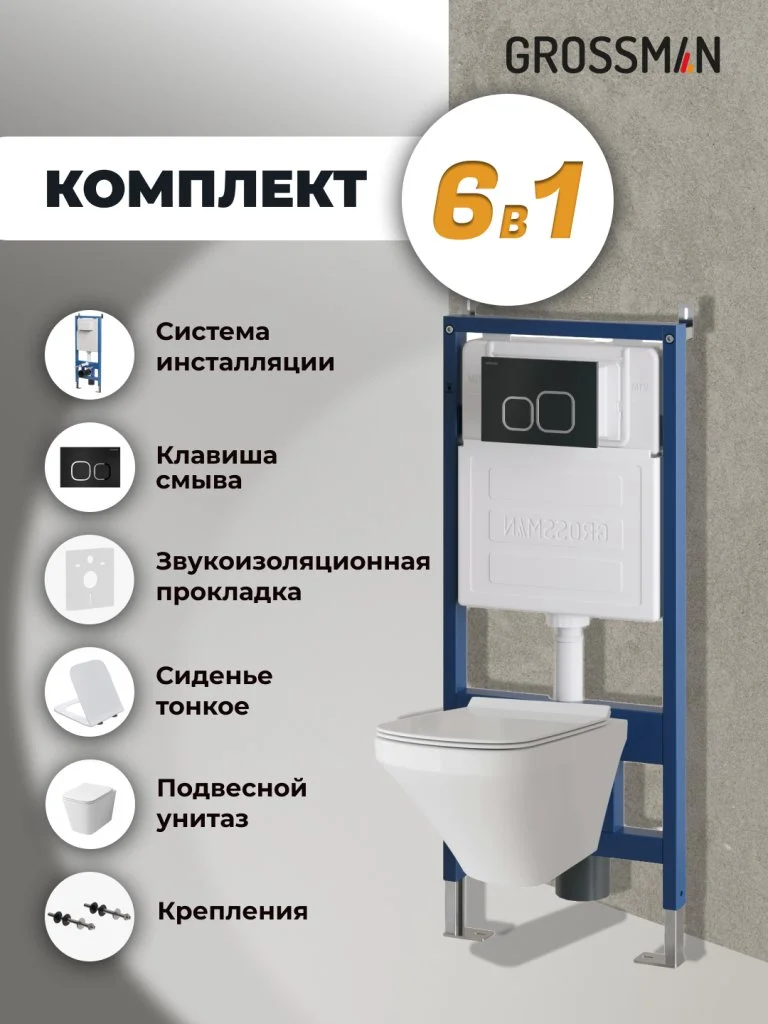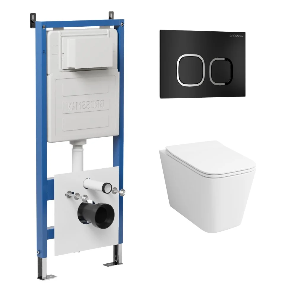 Комплект инсталляции GROSSMAN 900.K31.01.000 с клавишей смыва 700.K31.02.210.210 черный матовый и унитазом GROSSMAN GR-4441S арт.97.4441S.02.210
