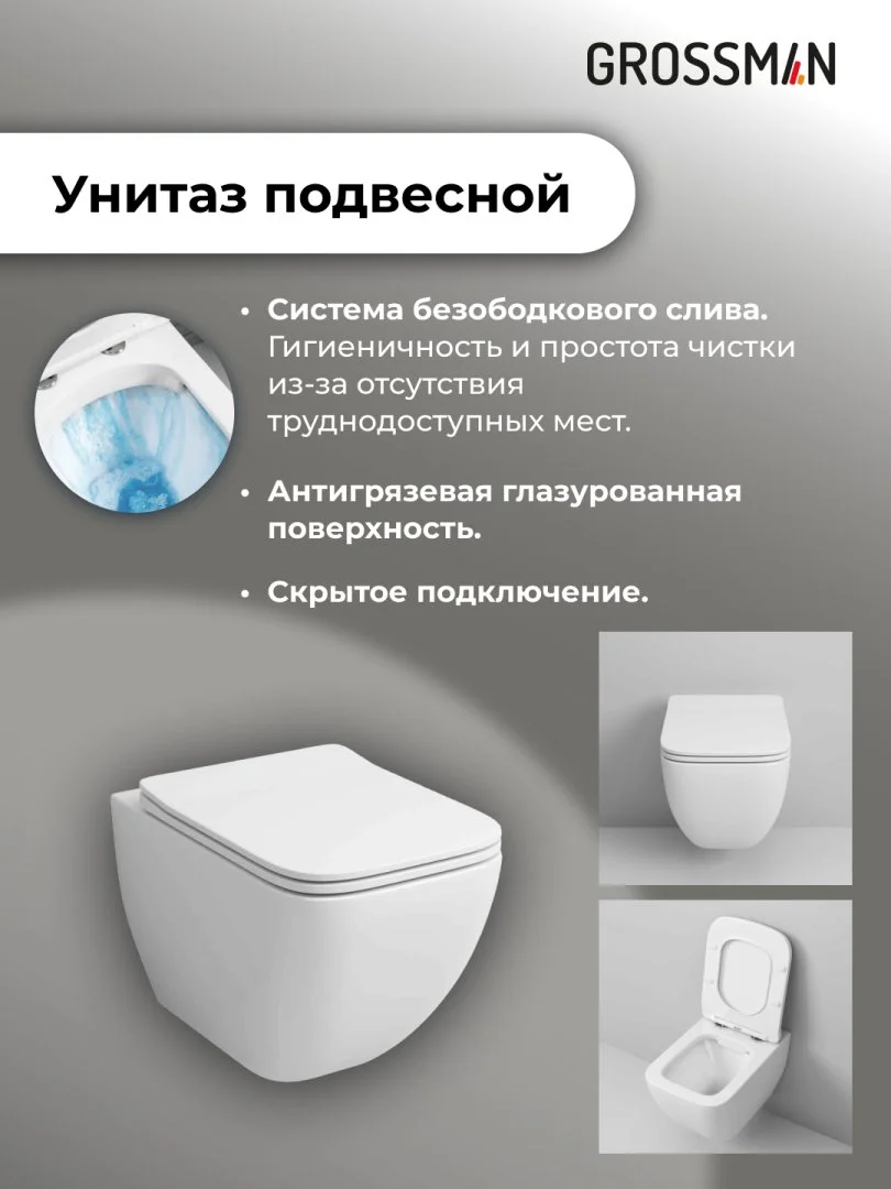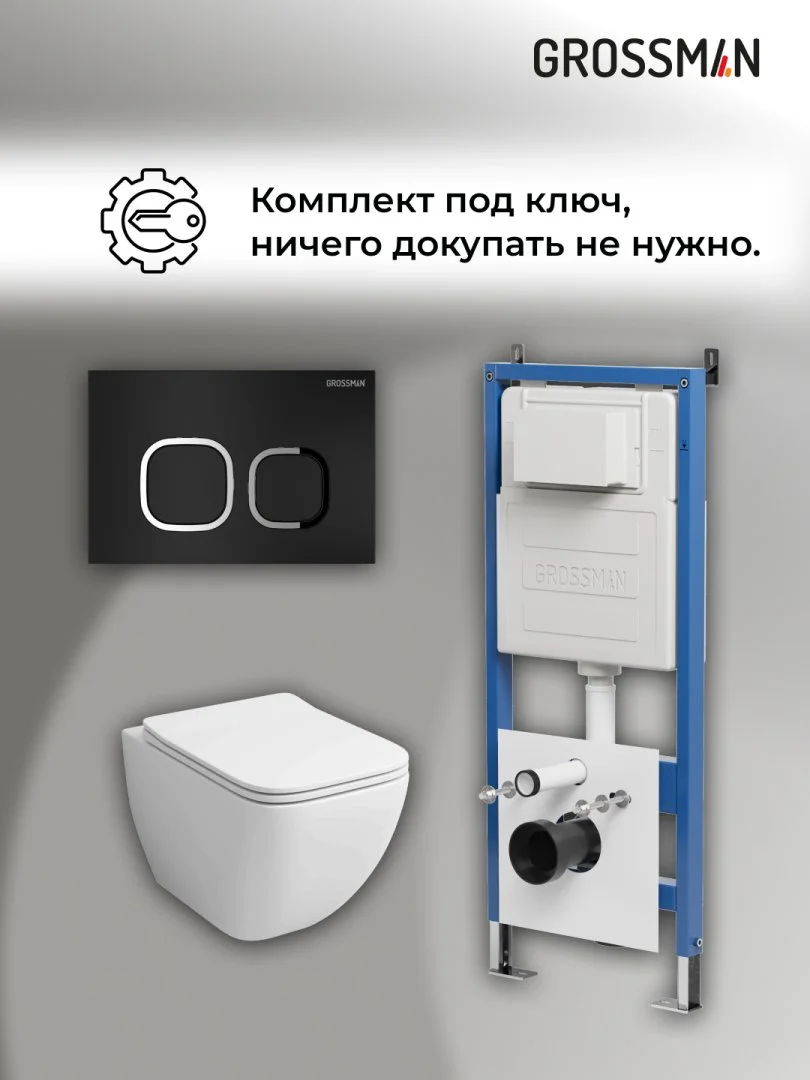 Комплект инсталляции GROSSMAN 900.K31.01.000 с клавишей смыва 700.K31.02.210.210 черный матовый и унитазом GROSSMAN GR-4447S арт.97.4447S.02.210