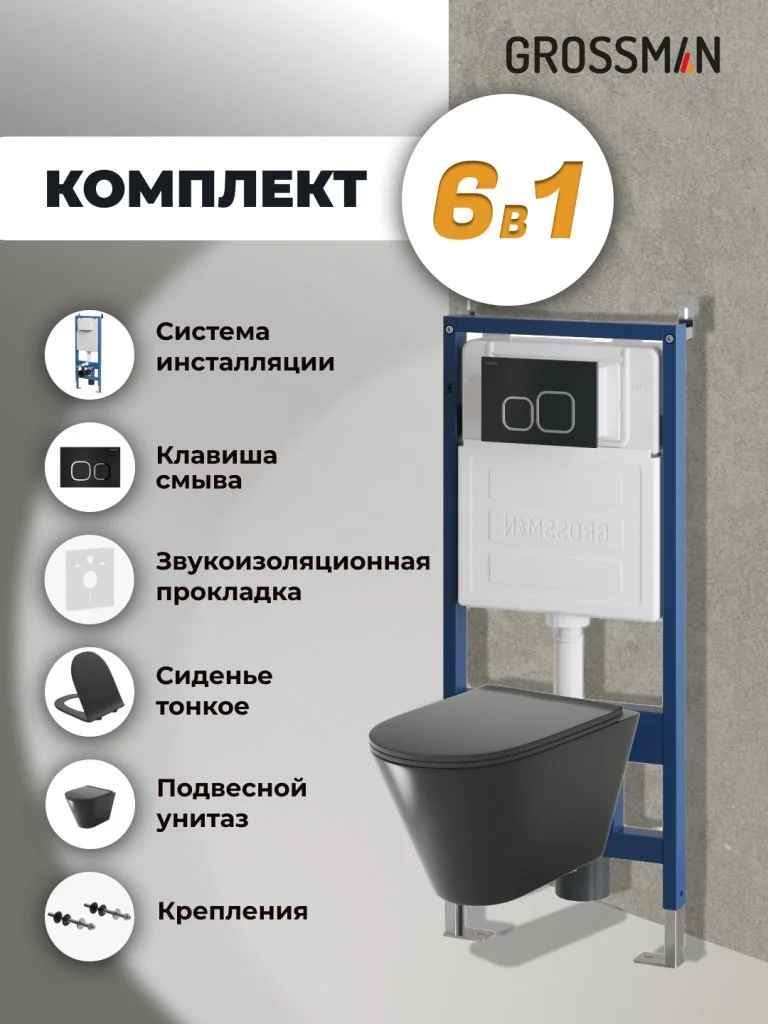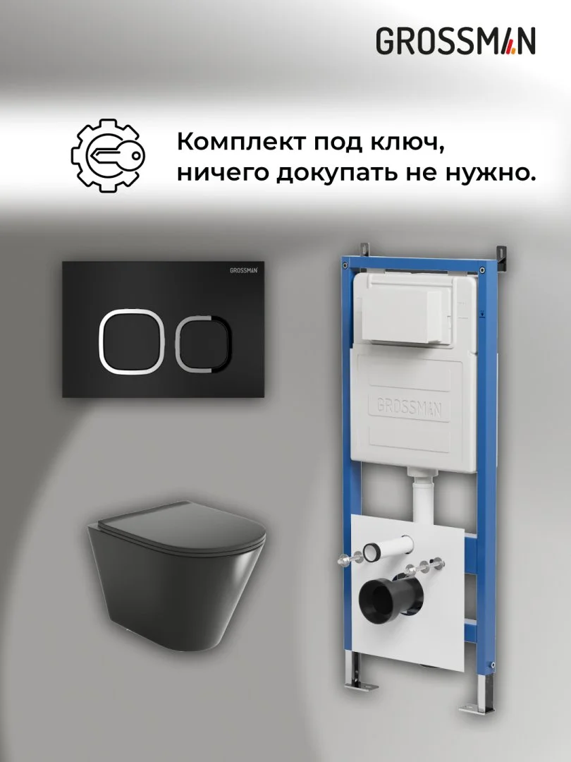 Комплект инсталляции GROSSMAN 900.K31.01.000 с клавишей смыва 700.K31.02.210.210 черный матовый и унитазом GROSSMAN GR-4477BMS арт.97.4477BMS.02.210