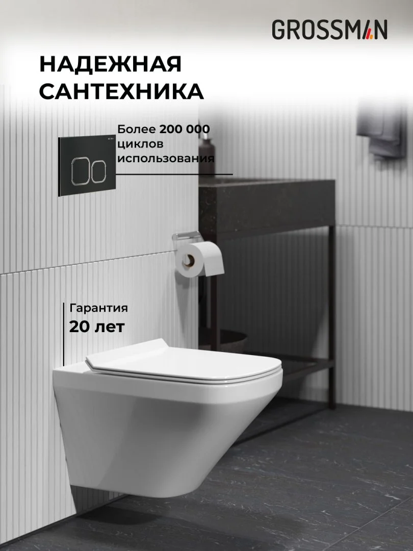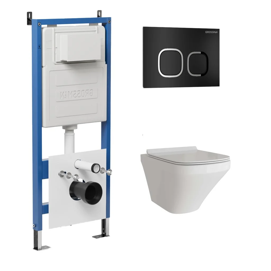 Комплект инсталляции GROSSMAN 900.K31.01.000 с клавишей смыва 700.K31.02.210.210 черный матовый и унитазом GROSSMAN GR-4440S арт.97.4440S.02.210