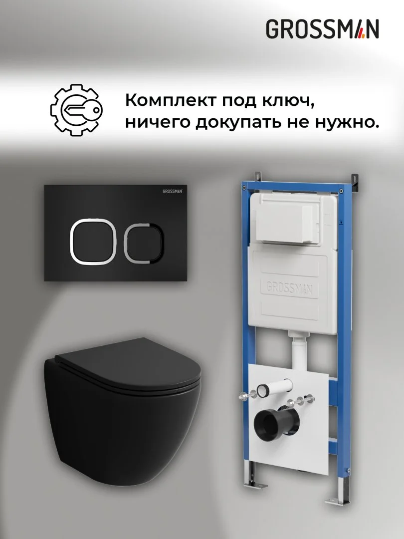 Комплект инсталляции GROSSMAN 900.K31.01.000 с клавишей смыва 700.K31.02.210.210 черный матовый и унитазом GROSSMAN GR-4455BMSQ арт.97.4455BMSQ.02.210