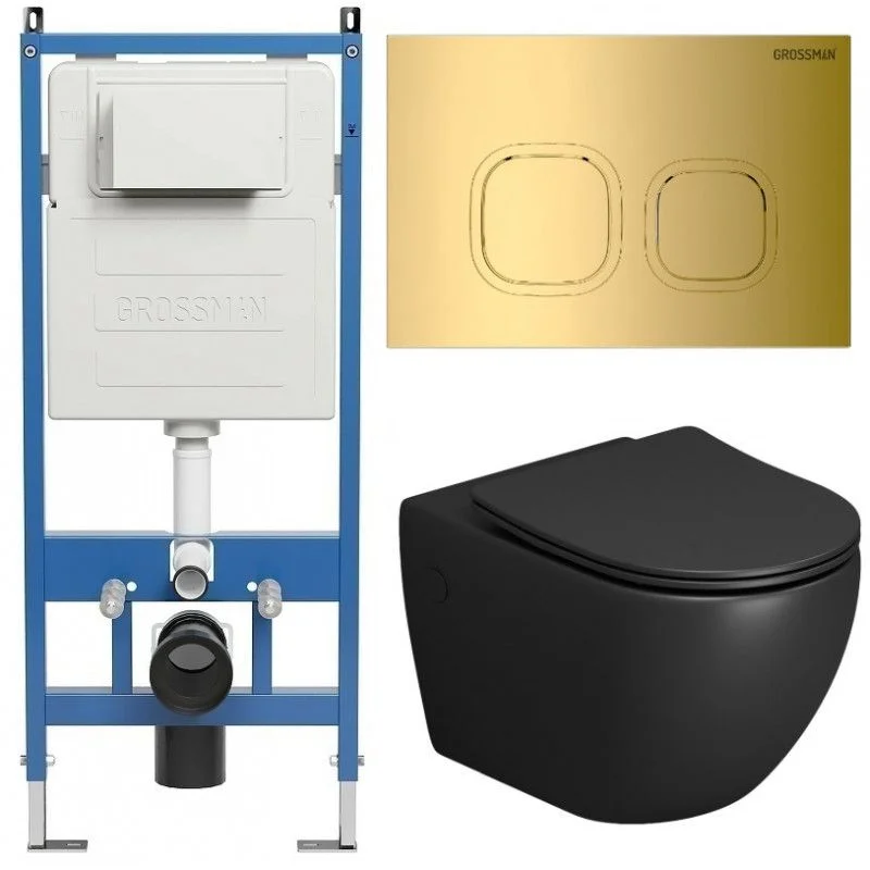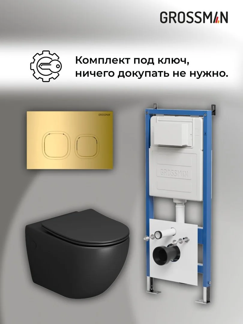 Комплект инсталляции GROSSMAN 900.K31.01.000 с клавишей смыва 700.K31.02.300.300 золото и унитазом GROSSMAN GR-4411BMS арт.97.4411BMS.02.300