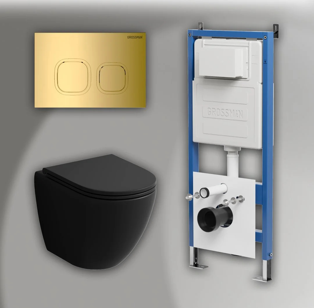 Комплект инсталляции GROSSMAN 900.K31.01.000 с клавишей смыва 700.K31.02.300.300 золото и унитазом GROSSMAN GR-4455BMS арт.97.4455BMS.02.300