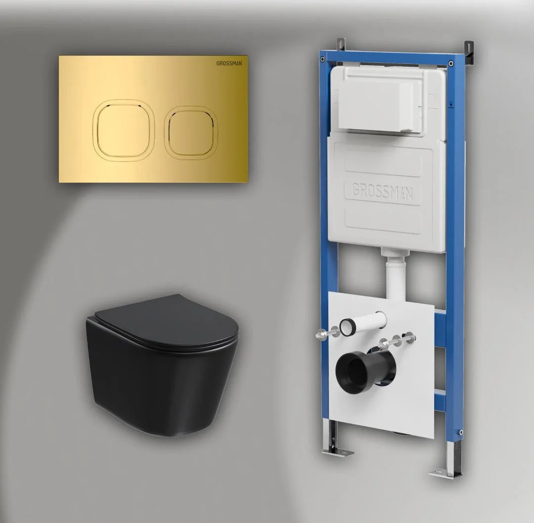 Комплект инсталляции GROSSMAN 900.K31.01.000 с клавишей смыва 700.K31.02.300.300 золото и унитазом GROSSMAN GR-4477BMSQ арт.97.4477BMSQ.02.300