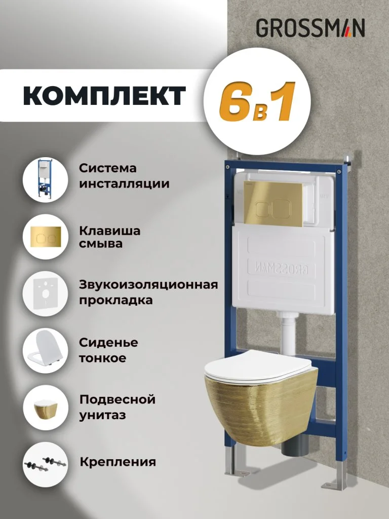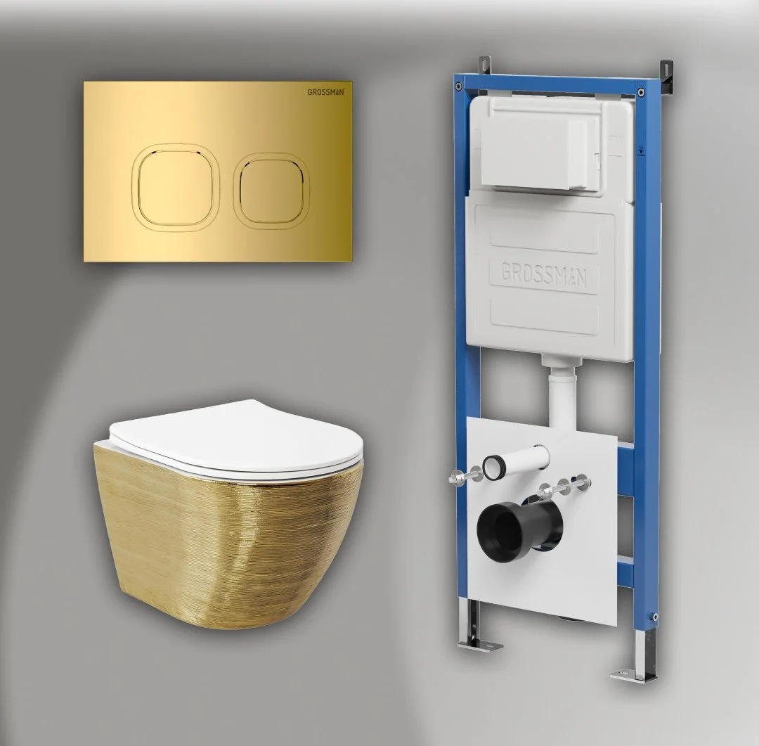 Комплект инсталляции GROSSMAN 900.K31.01.000 с клавишей смыва 700.K31.02.300.300 золото и унитазом GROSSMAN GR-4455GWS арт.97.4455GWS.02.300