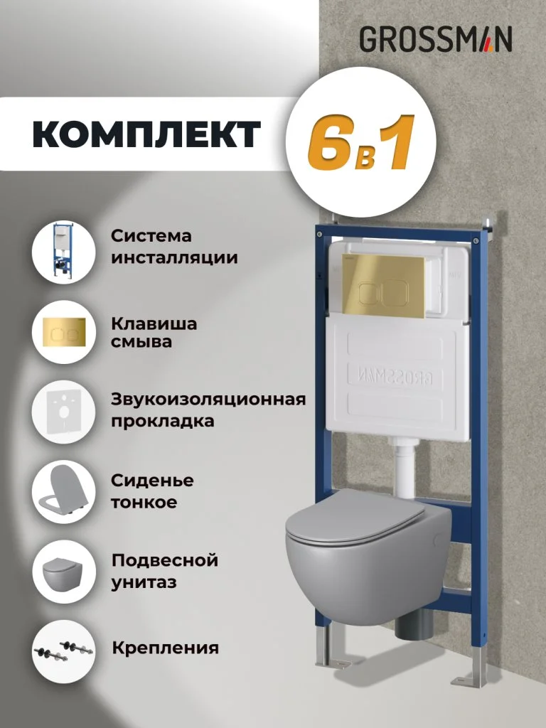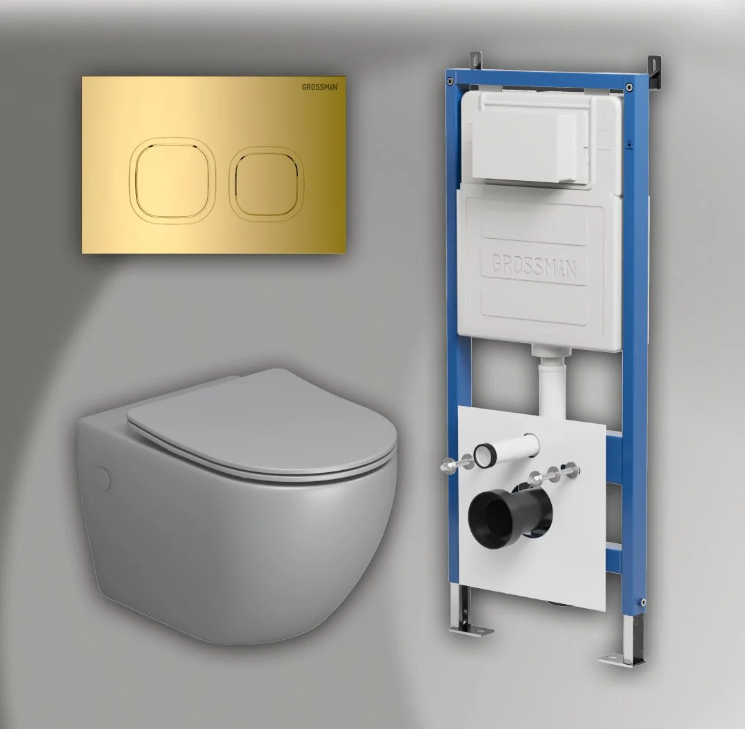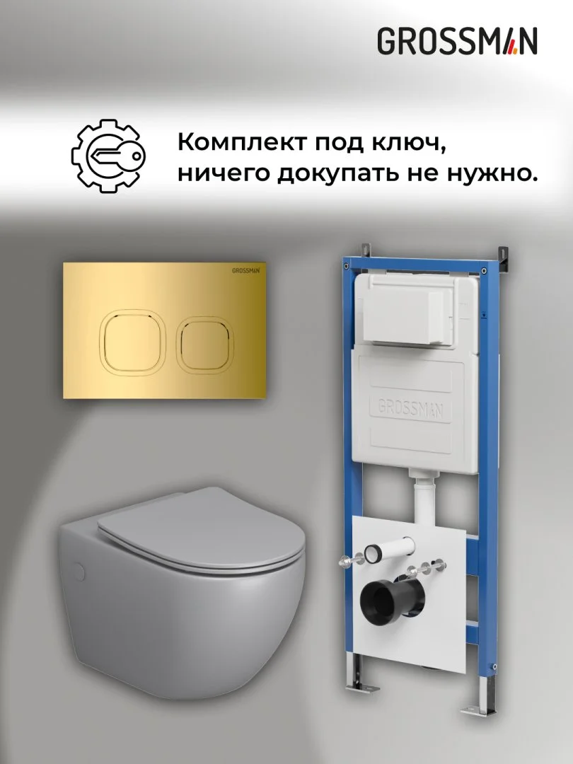 Комплект инсталляции GROSSMAN 900.K31.01.000 с клавишей смыва 700.K31.02.300.300 золото и унитазом GROSSMAN GR-4411GLMS арт.97.4411GLMS.02.300