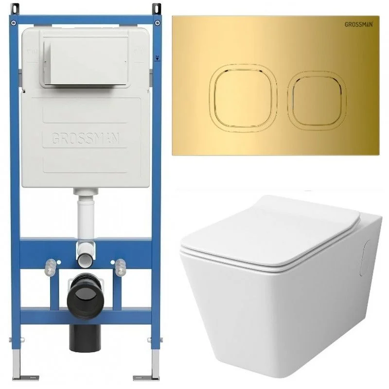 Комплект инсталляции GROSSMAN 900.K31.01.000 с клавишей смыва 700.K31.02.300.300 золото и унитазом GROSSMAN GR-4414S арт.97.4414S.02.300
