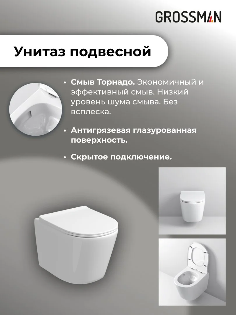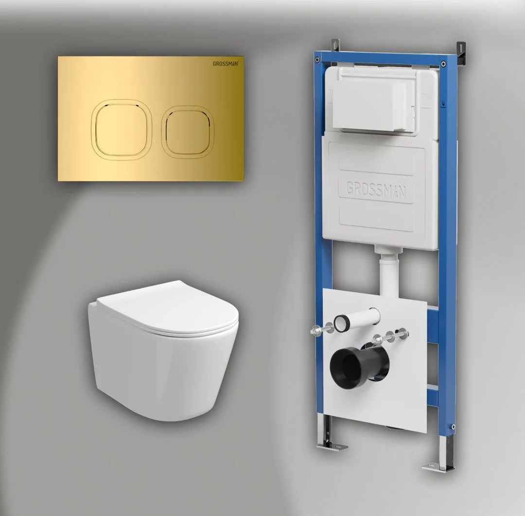 Комплект инсталляции GROSSMAN 900.K31.01.000 с клавишей смыва 700.K31.02.300.300 золото и унитазом GROSSMAN GR-4477SQ арт.97.4477SQ.02.300