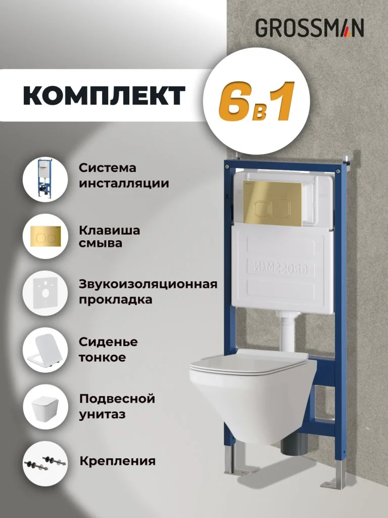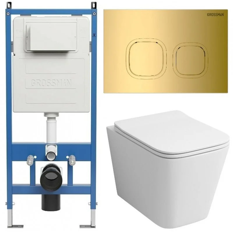 Комплект инсталляции GROSSMAN 900.K31.01.000 с клавишей смыва 700.K31.02.300.300 золото и унитазом GROSSMAN GR-4441S арт.97.4441S.02.300