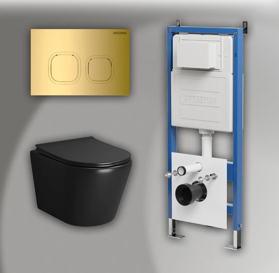 Комплект инсталляции GROSSMAN 900.K31.01.000 с клавишей смыва 700.K31.02.300.300 золото и унитазом GROSSMAN GR-4478BMS арт.97.4478BMS.02.300