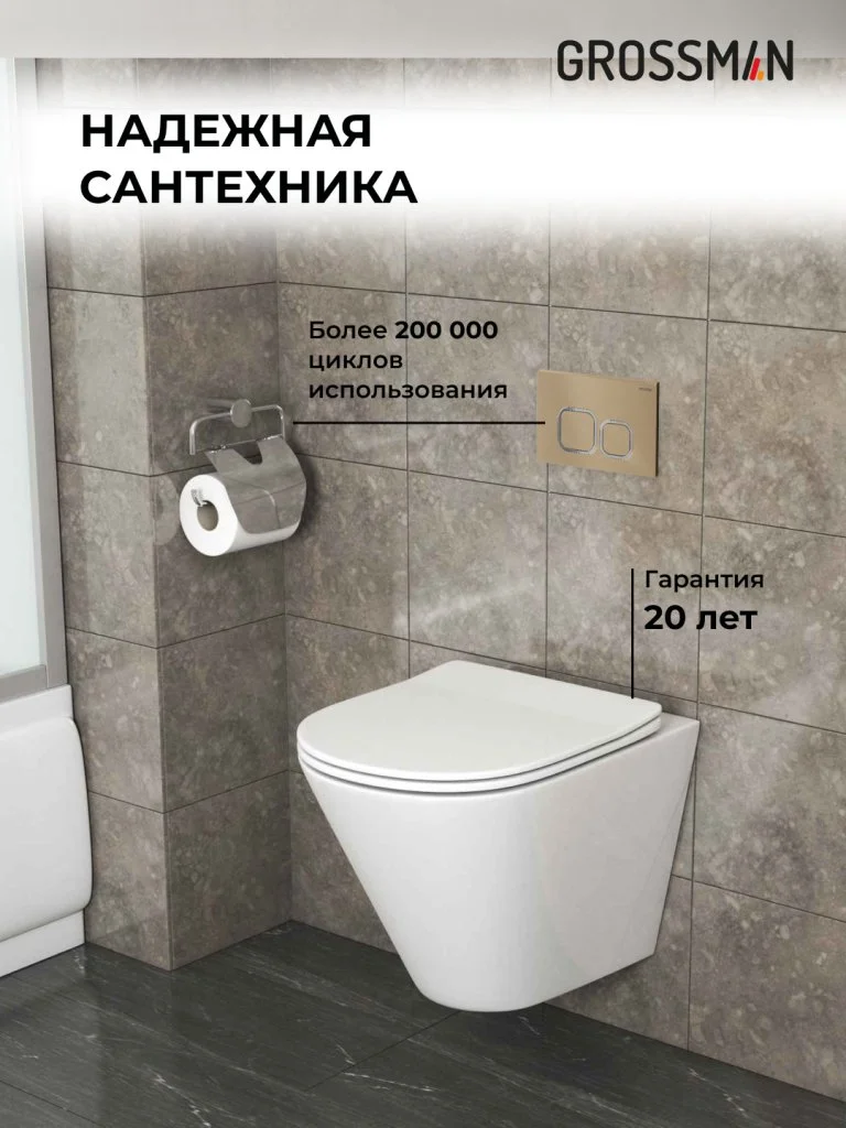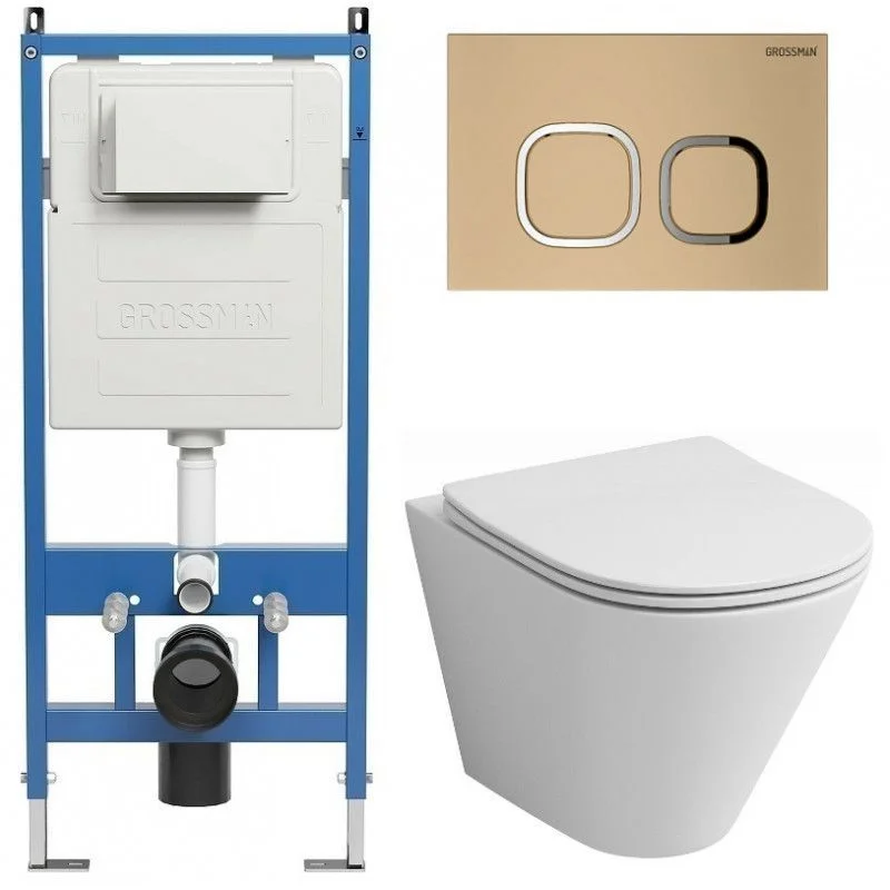 Комплект инсталляции GROSSMAN 900.K31.01.000 с клавишей смыва 700.K31.02.310.310 золото матовое и унитазом GROSSMAN GR-4477S арт.97.4477S.02.310