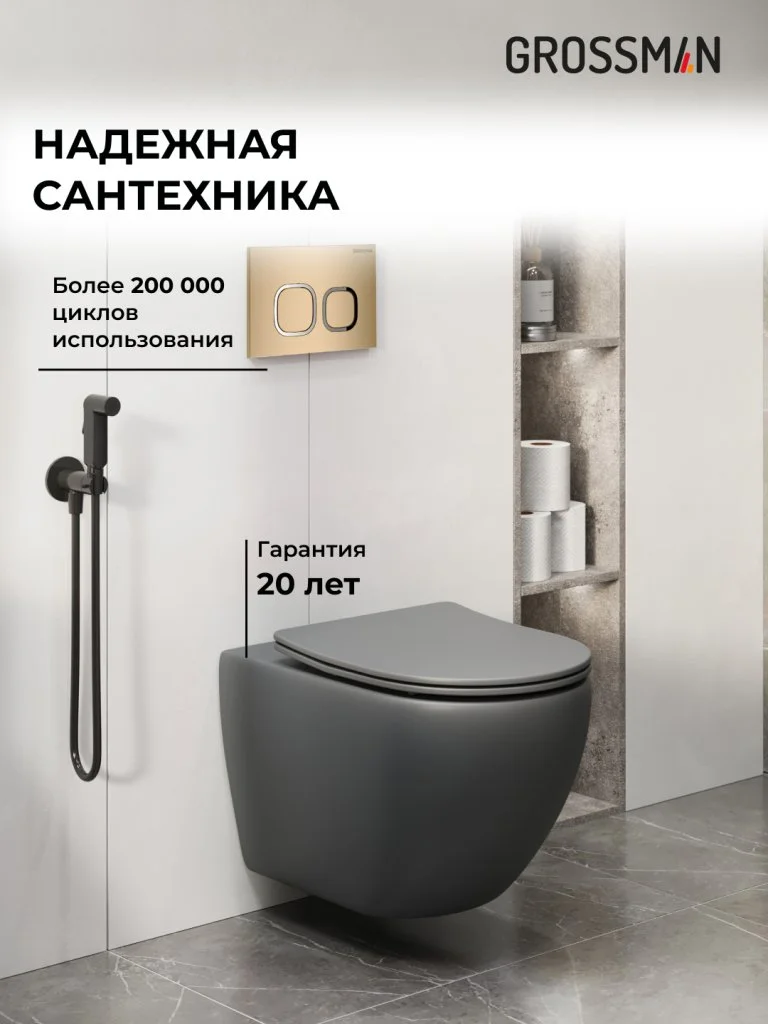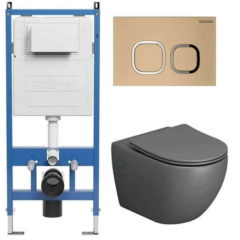Комплект инсталляции GROSSMAN 900.K31.01.000 с клавишей смыва 700.K31.02.310.310 золото матовое и унитазом GROSSMAN GR-4411GMS арт.97.4411GMS.02.310