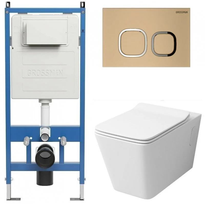 Комплект инсталляции GROSSMAN 900.K31.01.000 с клавишей смыва 700.K31.02.310.310 золото матовое и унитазом GROSSMAN GR-4414S арт.97.4414S.02.310