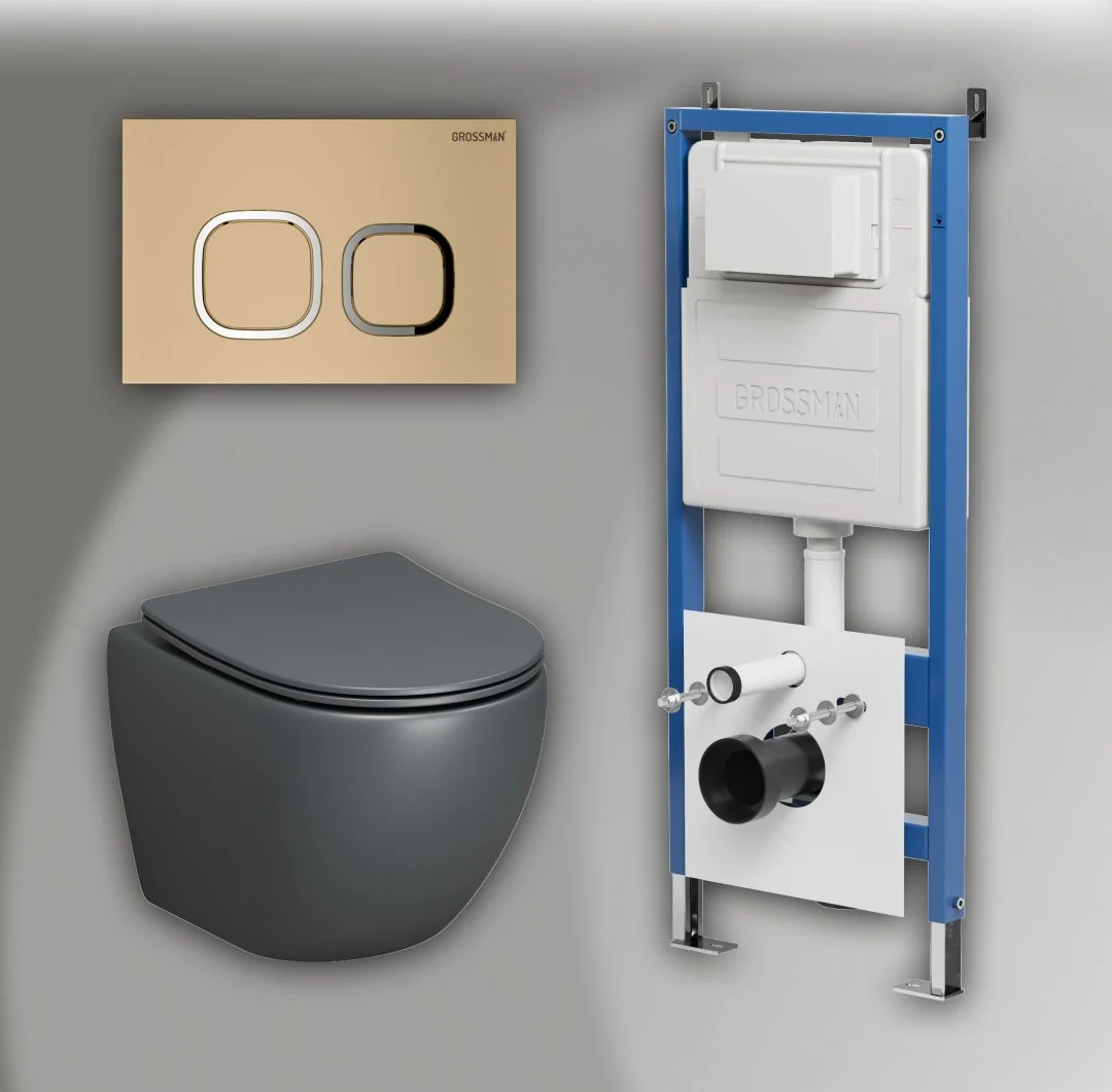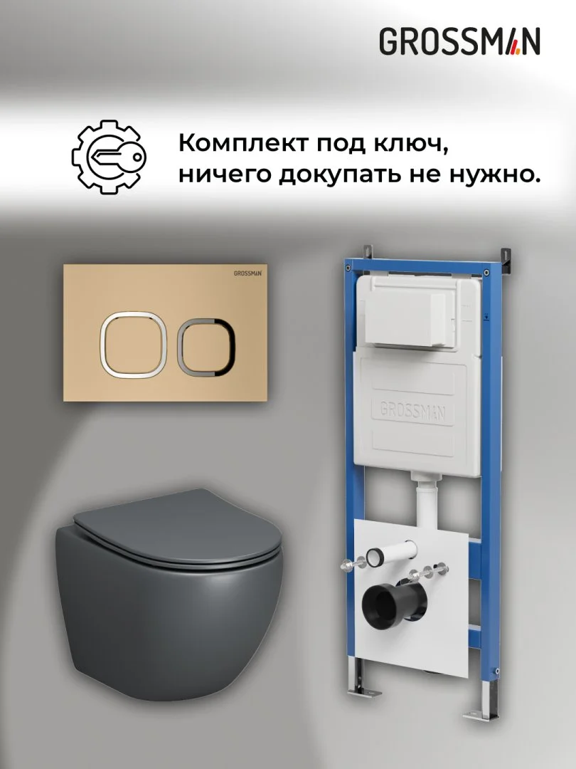 Комплект инсталляции GROSSMAN 900.K31.01.000 с клавишей смыва 700.K31.02.310.310 золото матовое и унитазом GROSSMAN GR-4455GMS арт.97.4455GMS.02.310