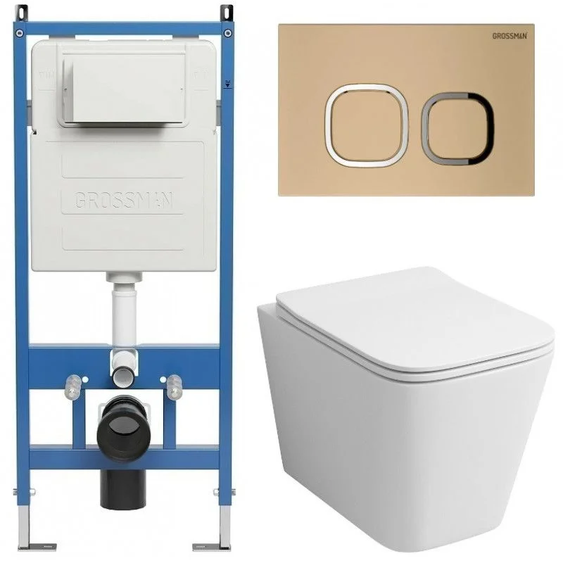 Комплект инсталляции GROSSMAN 900.K31.01.000 с клавишей смыва 700.K31.02.310.310 золото матовое и унитазом GROSSMAN GR-4441S арт.97.4441S.02.310