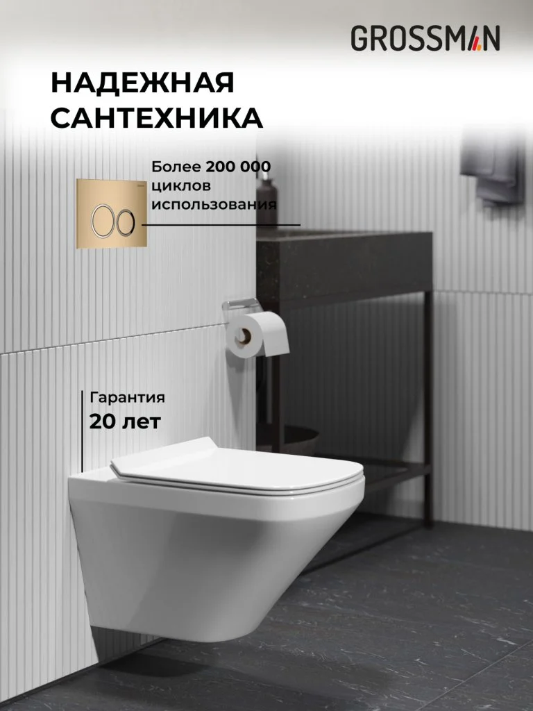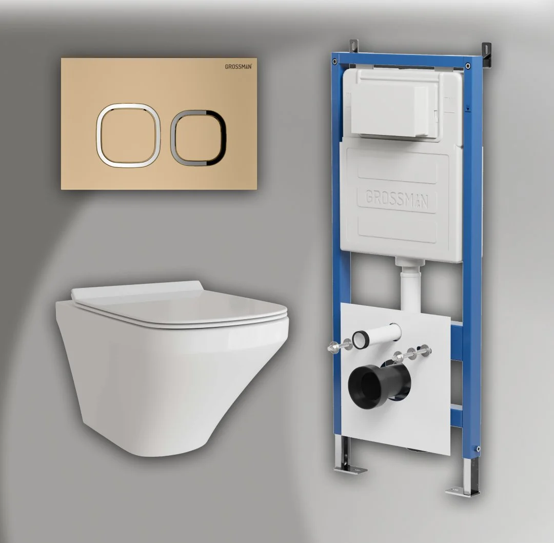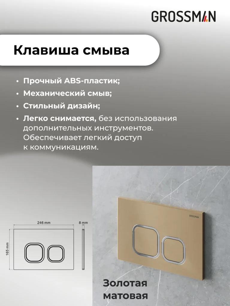 Комплект инсталляции GROSSMAN 900.K31.01.000 с клавишей смыва 700.K31.02.310.310 золото матовое и унитазом GROSSMAN GR-4440S арт.97.4440S.02.310