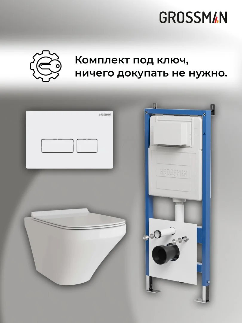 Комплект инсталляции GROSSMAN 900.K31.01.000 с клавишей смыва 700.K31.03.000.000 белый и унитазом GROSSMAN GR-4440S арт.97.4440S.03.000