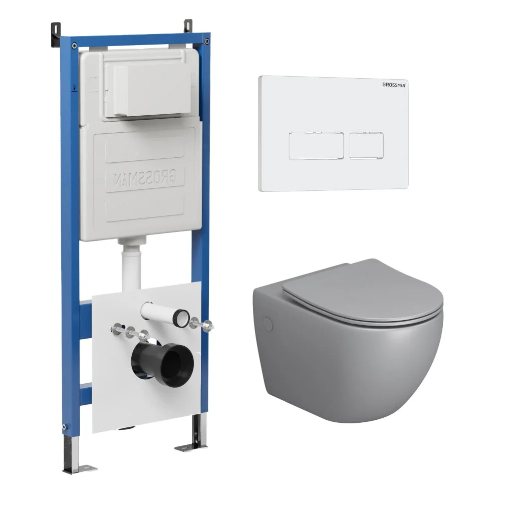 Комплект инсталляции GROSSMAN 900.K31.01.000 с клавишей смыва 700.K31.03.000.000 белый и унитазом GROSSMAN GR-4411SQ арт.97.4411SQ.03.000