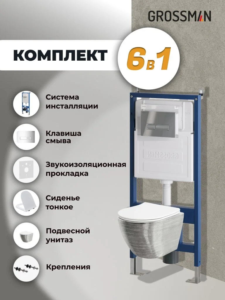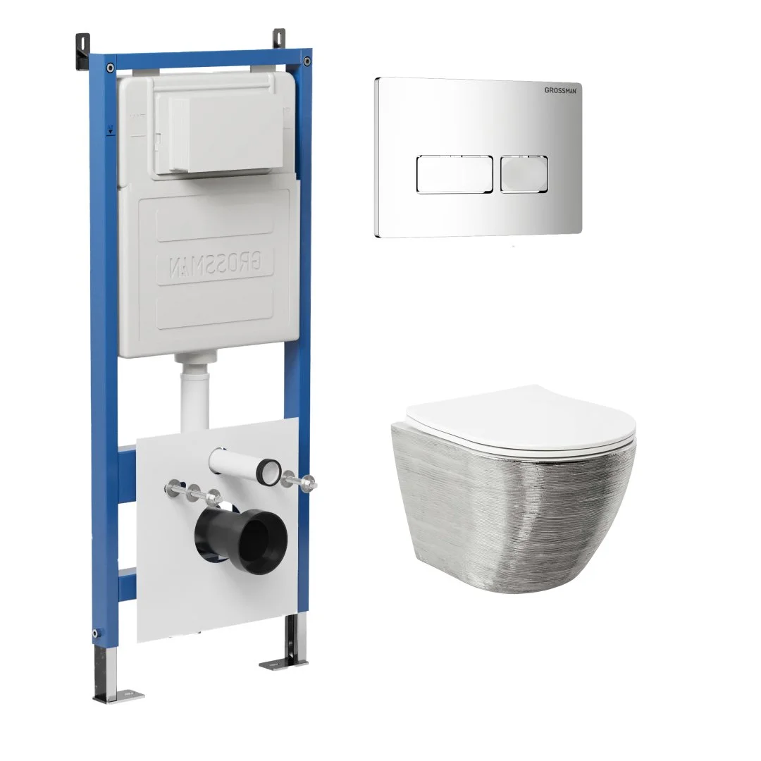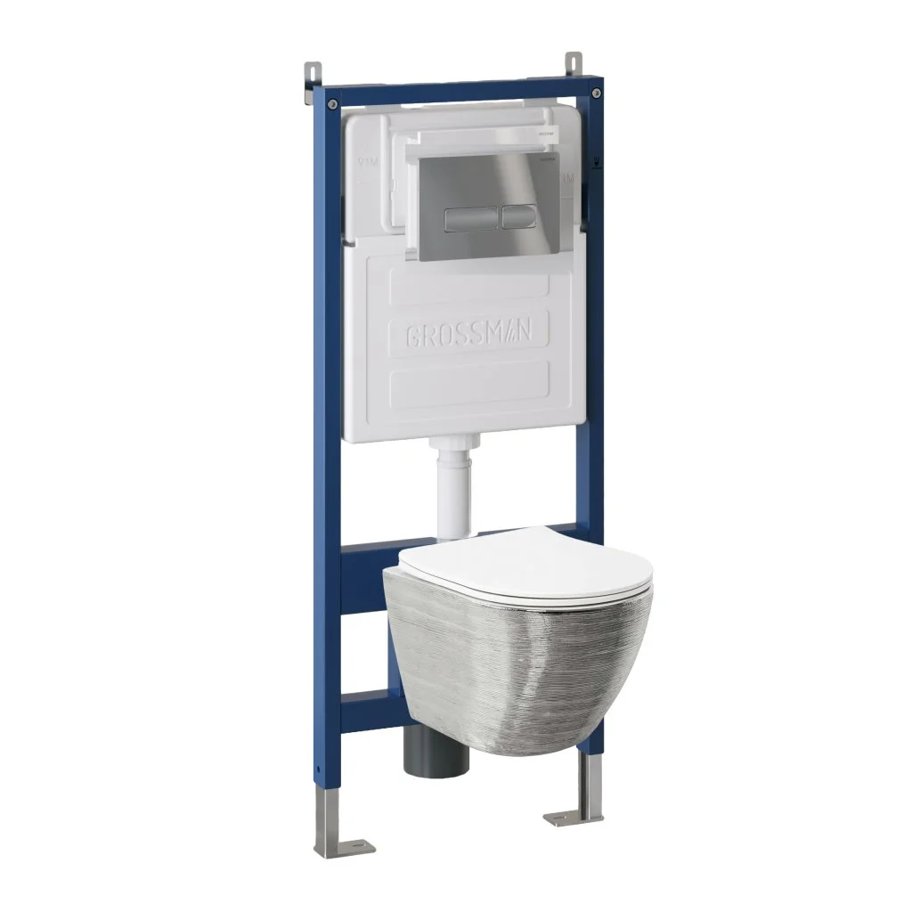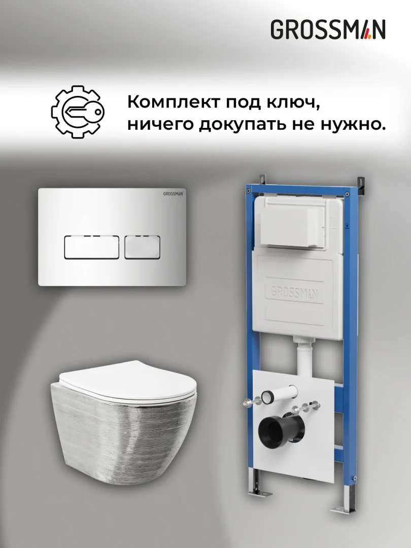 Комплект инсталляции GROSSMAN 900.K31.01.000 с клавишей смыва 700.K31.03.100.100 хром и унитазом GROSSMAN GR-4455SWS арт.97.4455SWS.03.100
