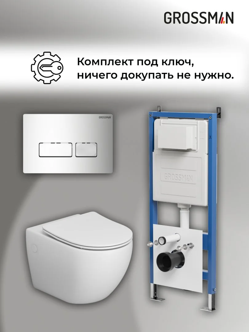 Комплект инсталляции GROSSMAN 900.K31.01.000 с клавишей смыва 700.K31.03.100.100 хром и унитазом GROSSMAN GR-4411SQ арт.97.4411SQ.03.100