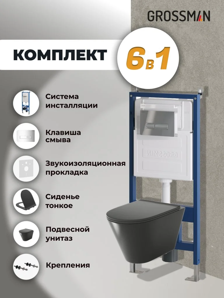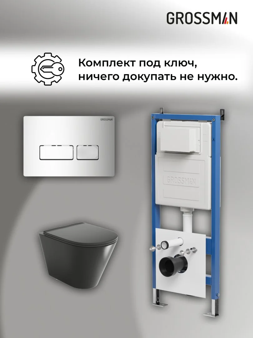 Комплект инсталляции GROSSMAN 900.K31.01.000 с клавишей смыва 700.K31.03.100.100 хром и унитазом GROSSMAN GR-4477BMS арт.97.4477BMS.03.100
