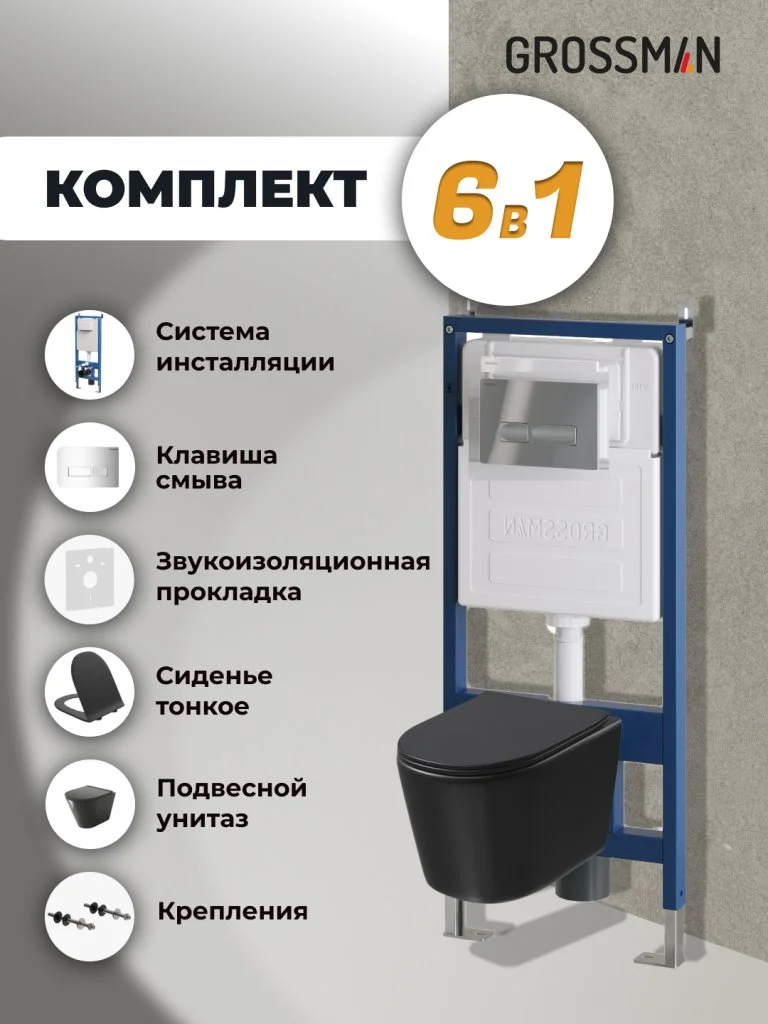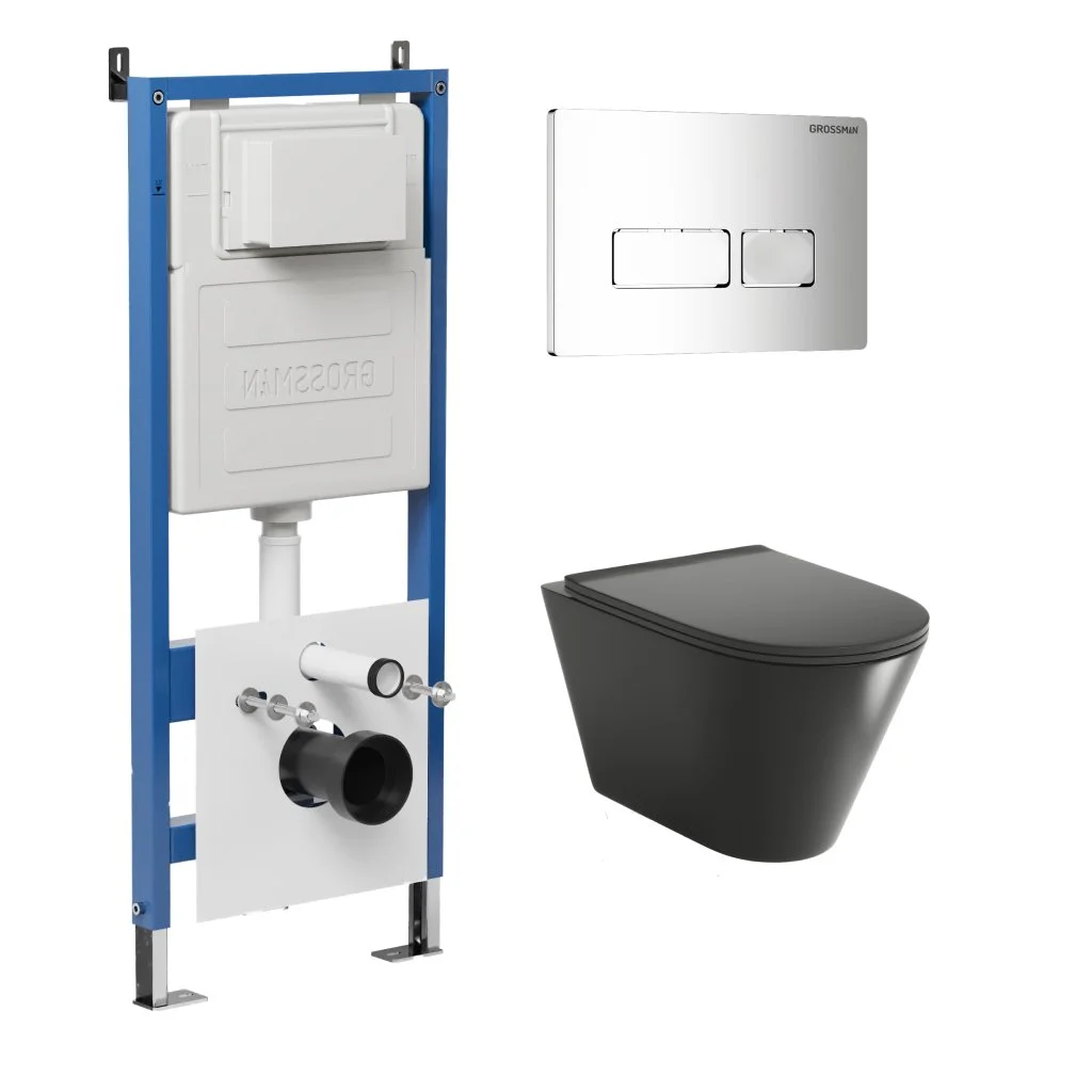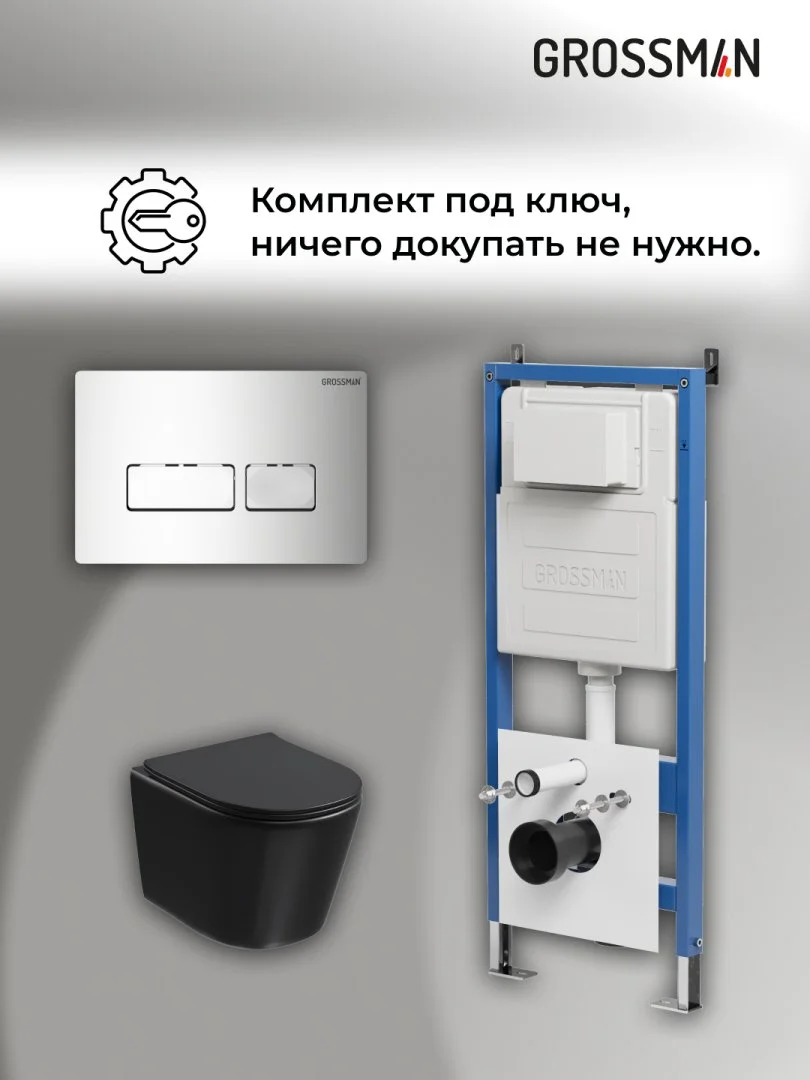 Комплект инсталляции GROSSMAN 900.K31.01.000 с клавишей смыва 700.K31.03.100.100 хром и унитазом GROSSMAN GR-4477BMSQ арт.97.4477BMSQ.03.100