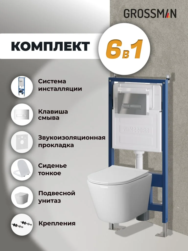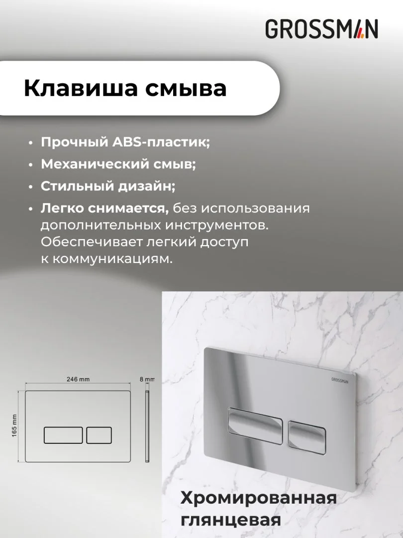 Комплект инсталляции GROSSMAN 900.K31.01.000 с клавишей смыва 700.K31.03.100.100 хром и унитазом GROSSMAN GR-4479SQ арт.97.4479SQ.03.100