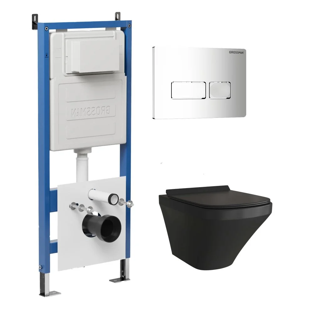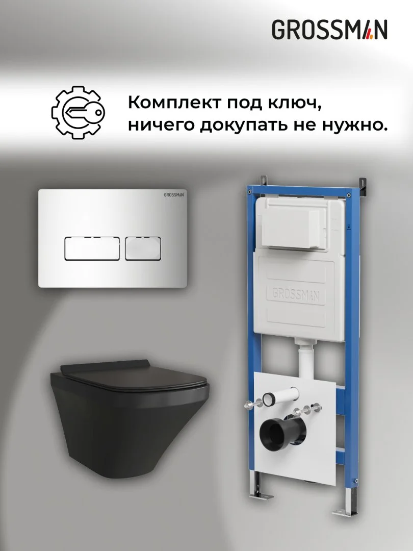 Комплект инсталляции GROSSMAN 900.K31.01.000 с клавишей смыва 700.K31.03.100.100 хром и унитазом GROSSMAN GR-4440BMS арт.97.4440BMS.03.100