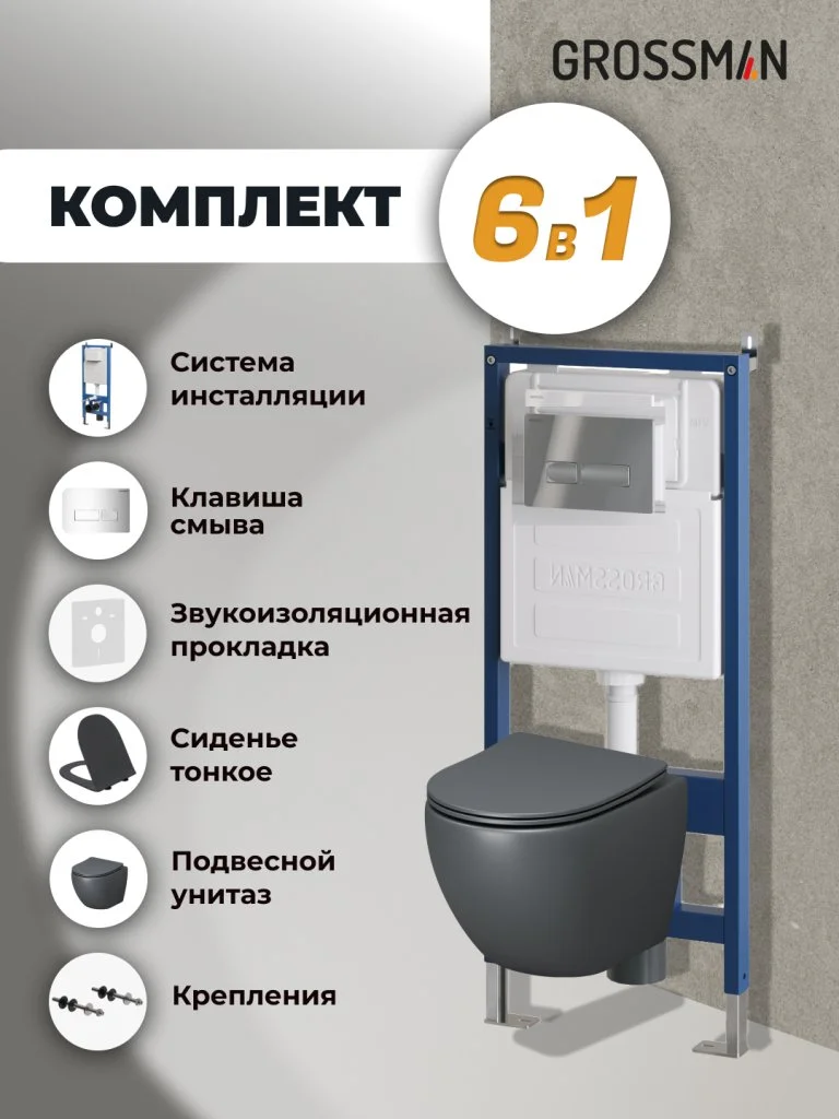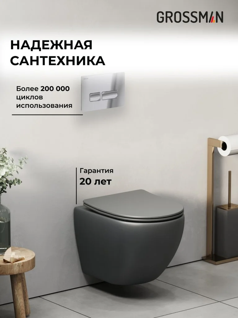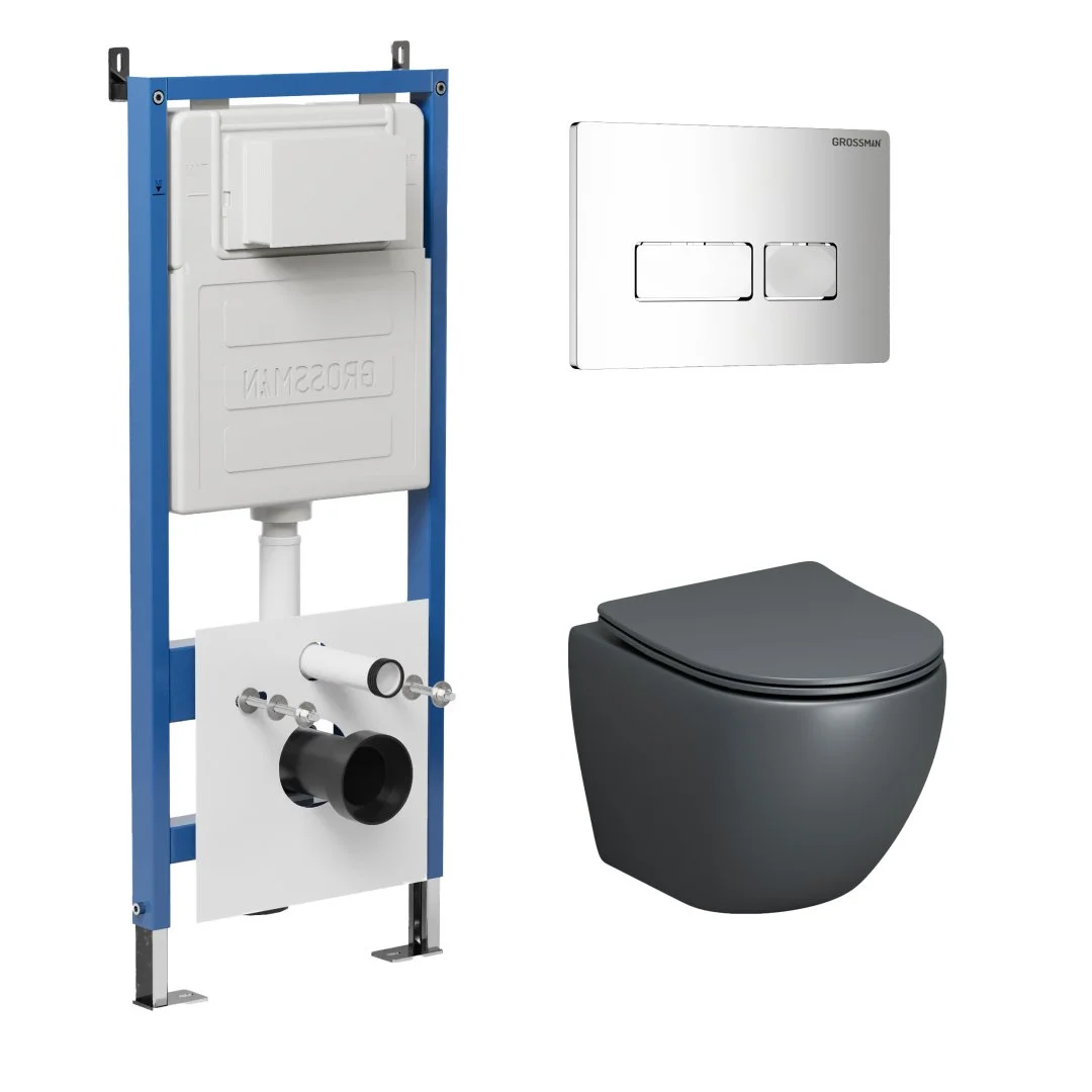 Комплект инсталляции GROSSMAN 900.K31.01.000 с клавишей смыва 700.K31.03.100.100 хром и унитазом GROSSMAN GR-4455GMS арт.97.4455GMS.03.100