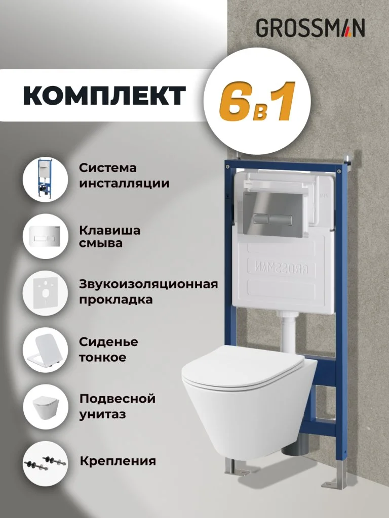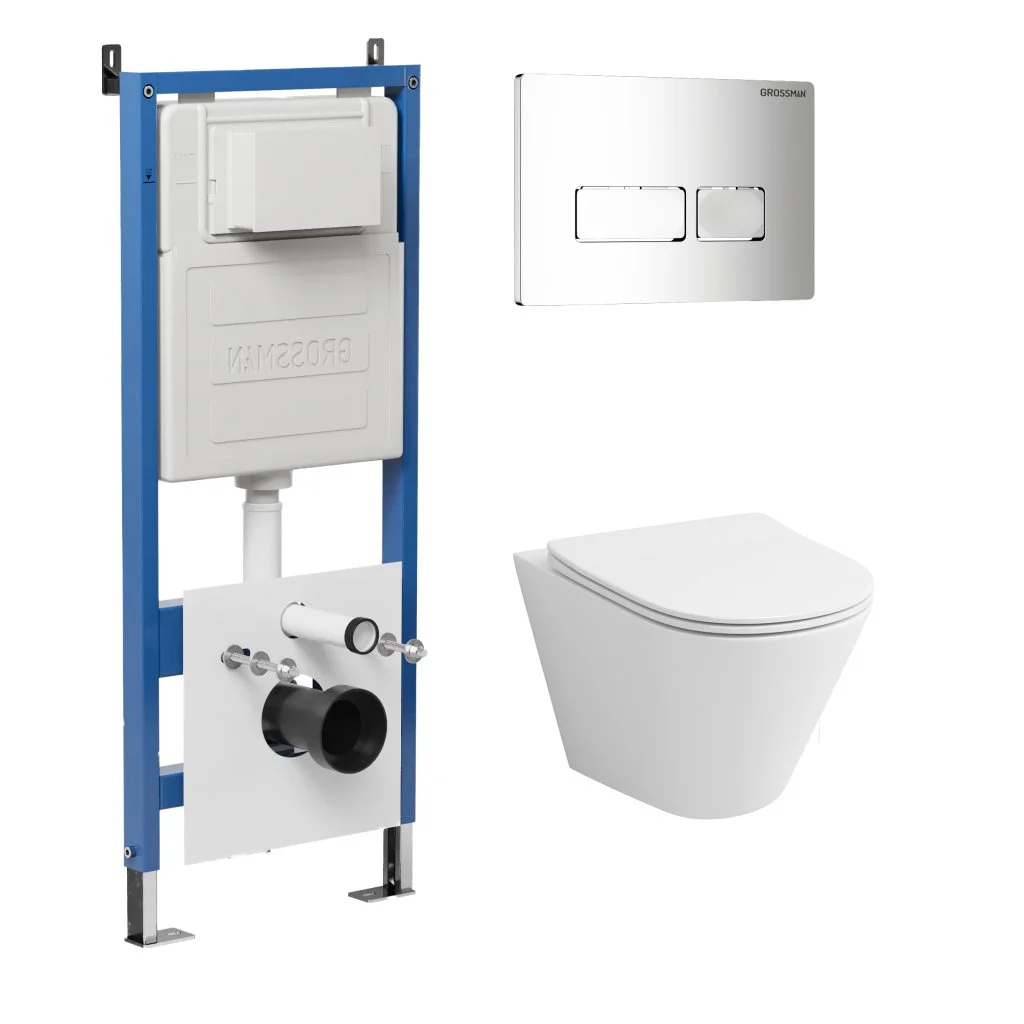 Комплект инсталляции GROSSMAN 900.K31.01.000 с клавишей смыва 700.K31.03.100.100 хром и унитазом GROSSMAN GR-4477S арт.97.4477S.03.100