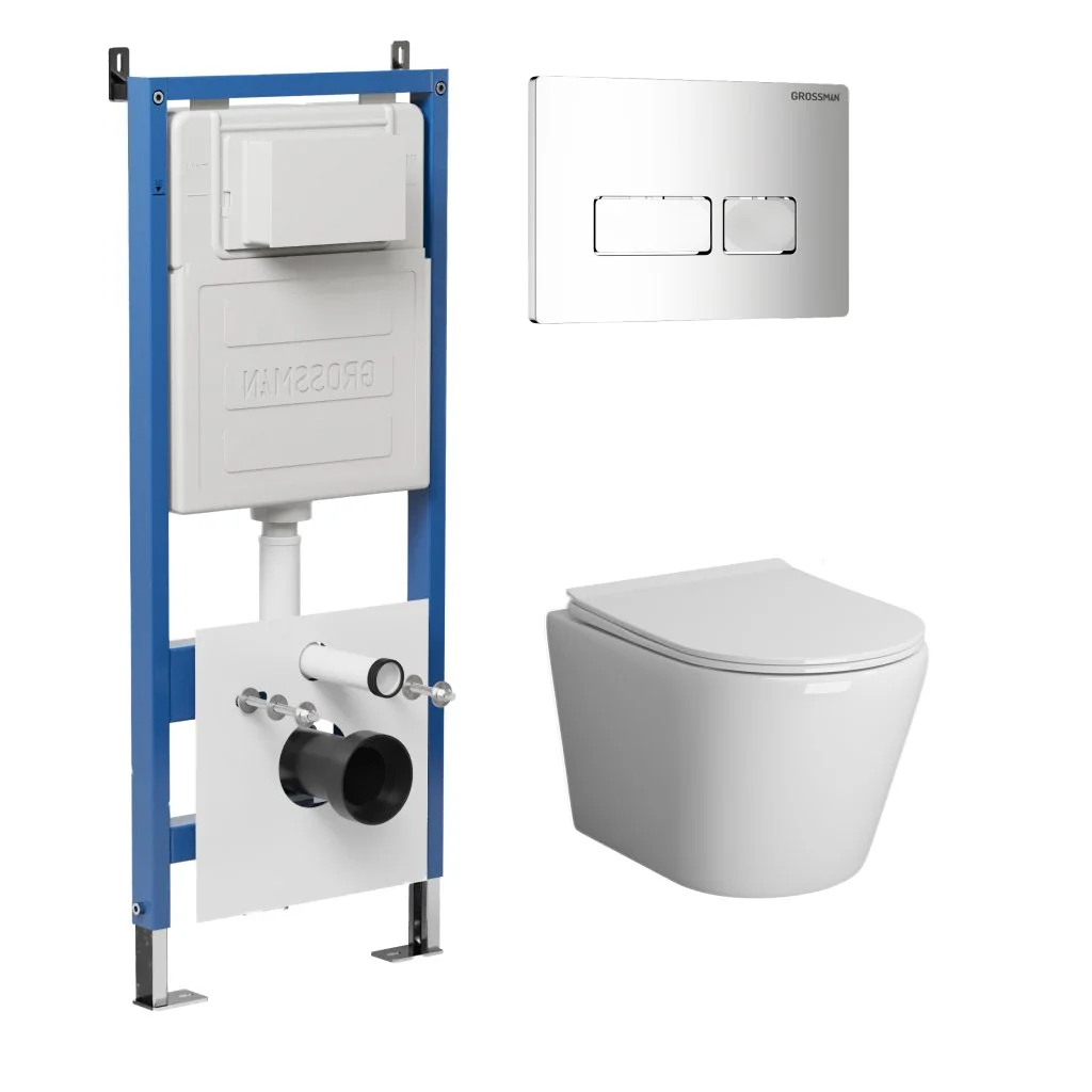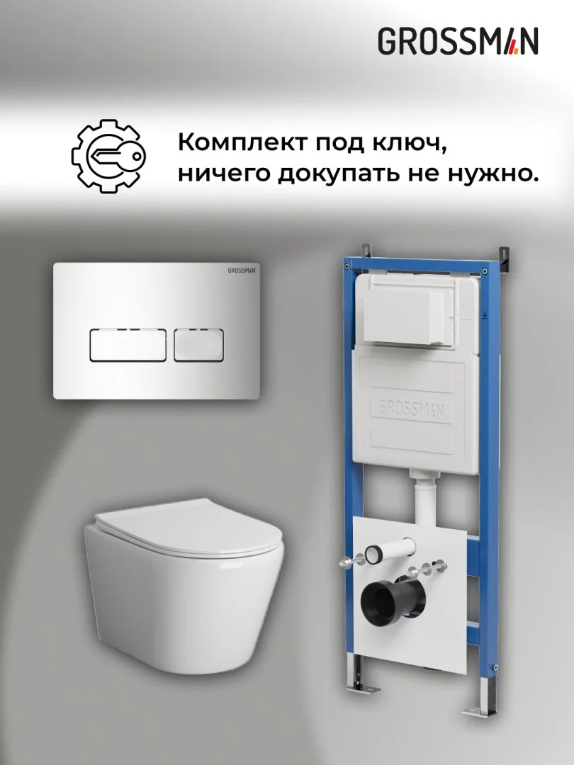 Комплект инсталляции GROSSMAN 900.K31.01.000 с клавишей смыва 700.K31.03.100.100 хром и унитазом GROSSMAN GR-4478SQ арт.97.4478SQ.03.100